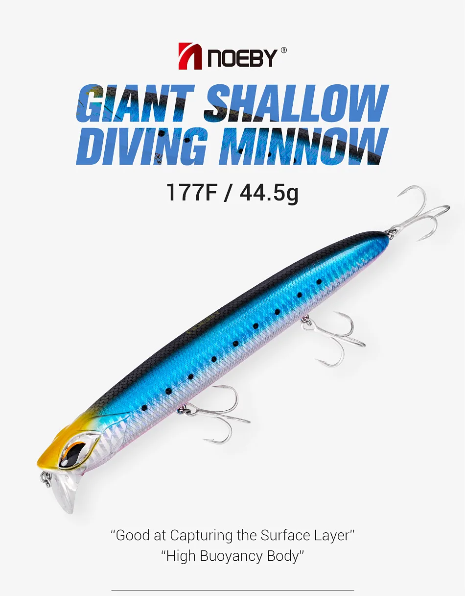 Noeby Minnow DE BUCEO poco profundo 177mm 44,5G flotante 0-30cm Jerkbait capa superficial señuelo de pesca cebo duro de pesca Artificial