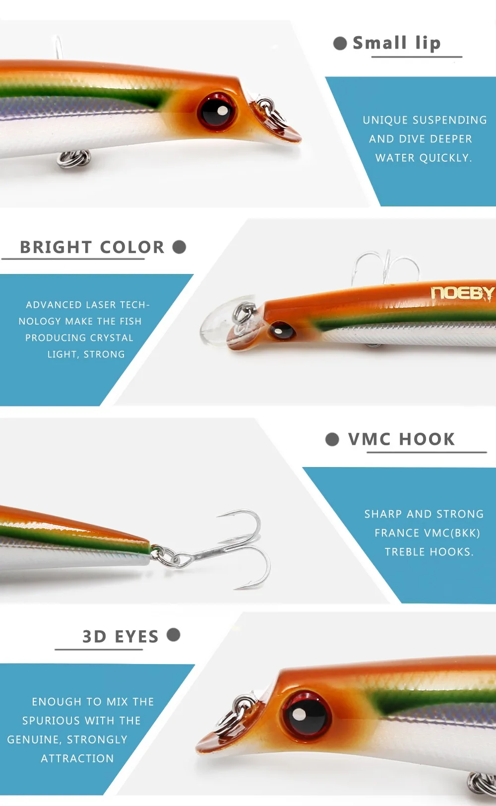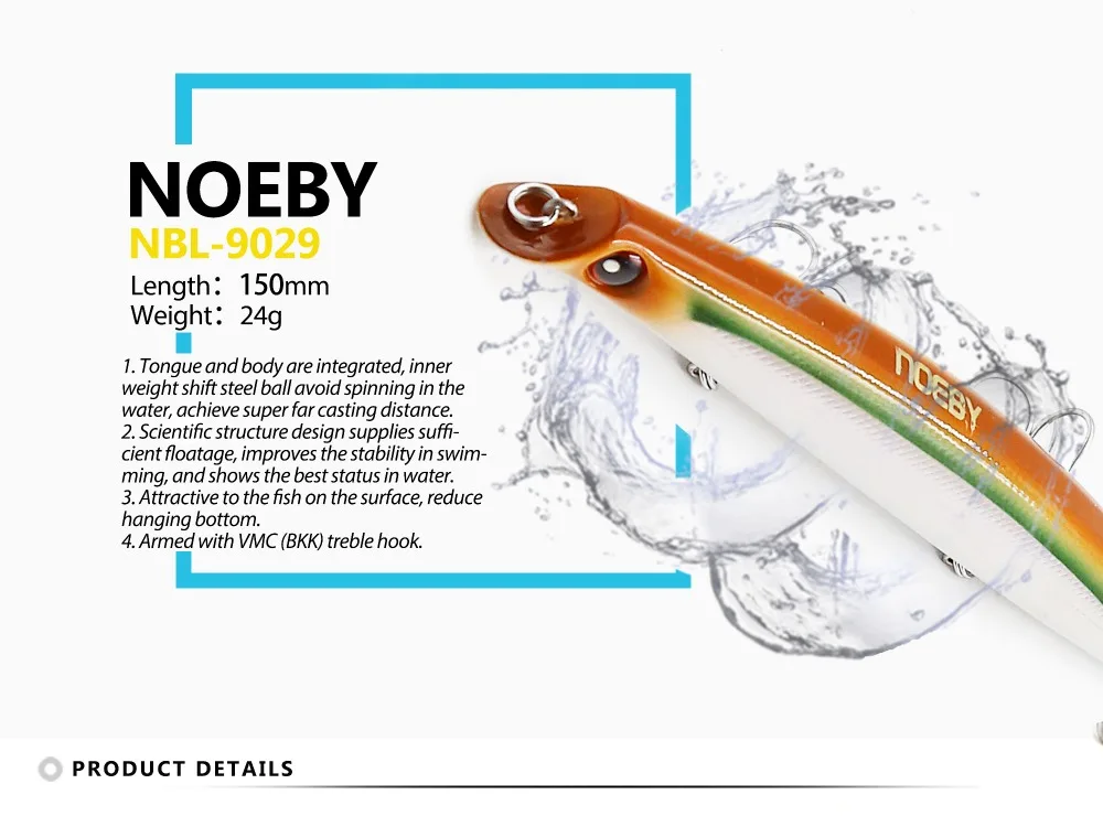 Noeby NBL9029 120 y 150mm 16 y 24g pececillo que flota Barra de cebo para cebo de agua salada Señuelos de pesca