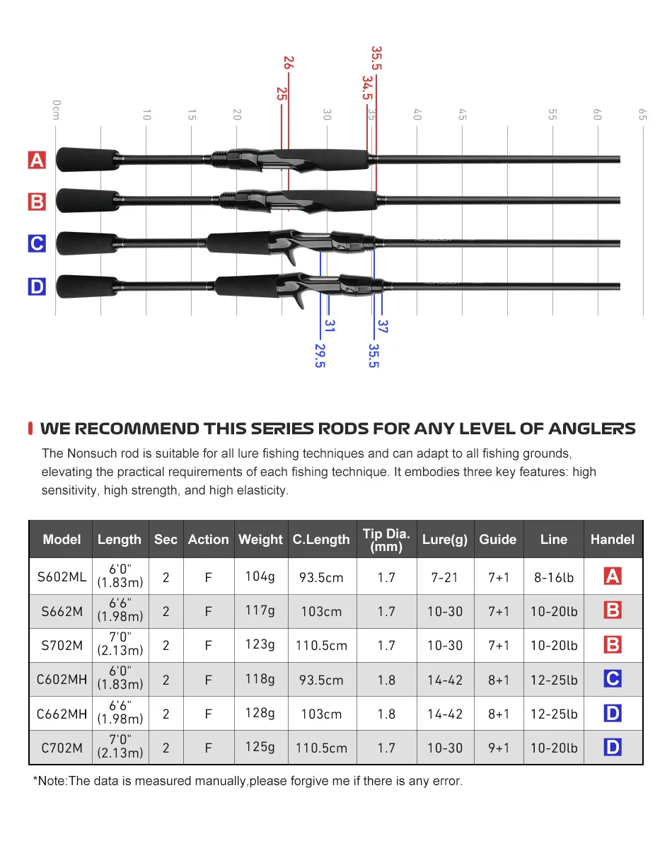 Caña de pescar NOEBY NONSUCH con todos los señuelos ML M MH 1,83 m 1,98 m 2,13 m, caña de pescar giratoria, guía Fuji, caña de pescar multiusos para Lucio y trucha
