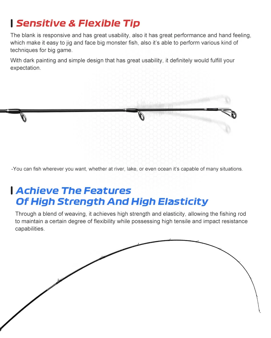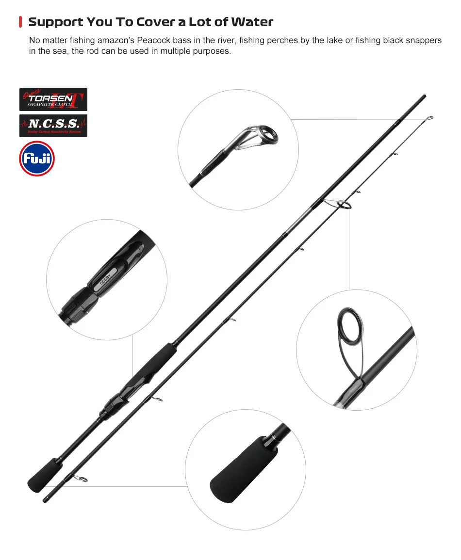 No importa si la pesca de la lubina de pavo real de Amazon en el río, la pesca de perchas junto al lago o la pesca de snappers negros en el mar, la caña se puede utilizar con múltiples propósitos.