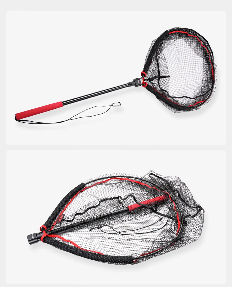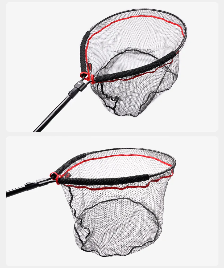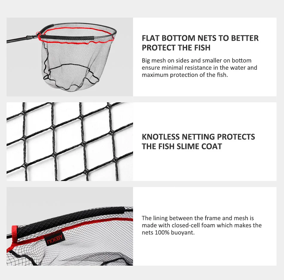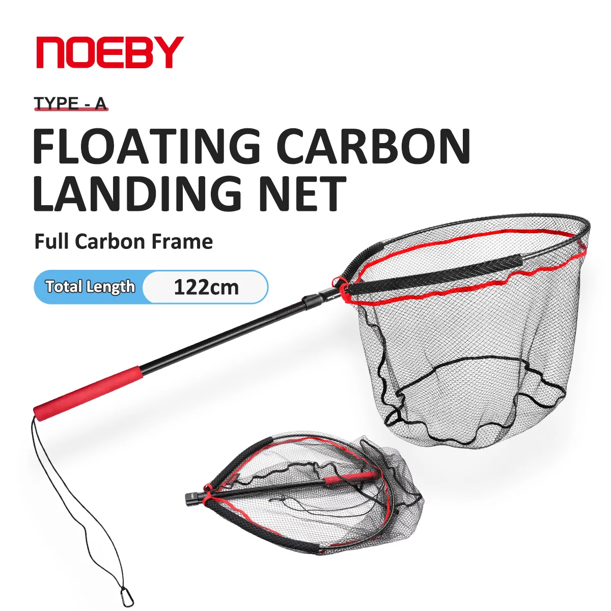 Noeby-Red de aterrizaje de tubo flotante, red plegable, red con mango de carbono, 60 cm * 50 cm, redes flotantes de 122 cm en total, aparejos de peces grandes para luccio