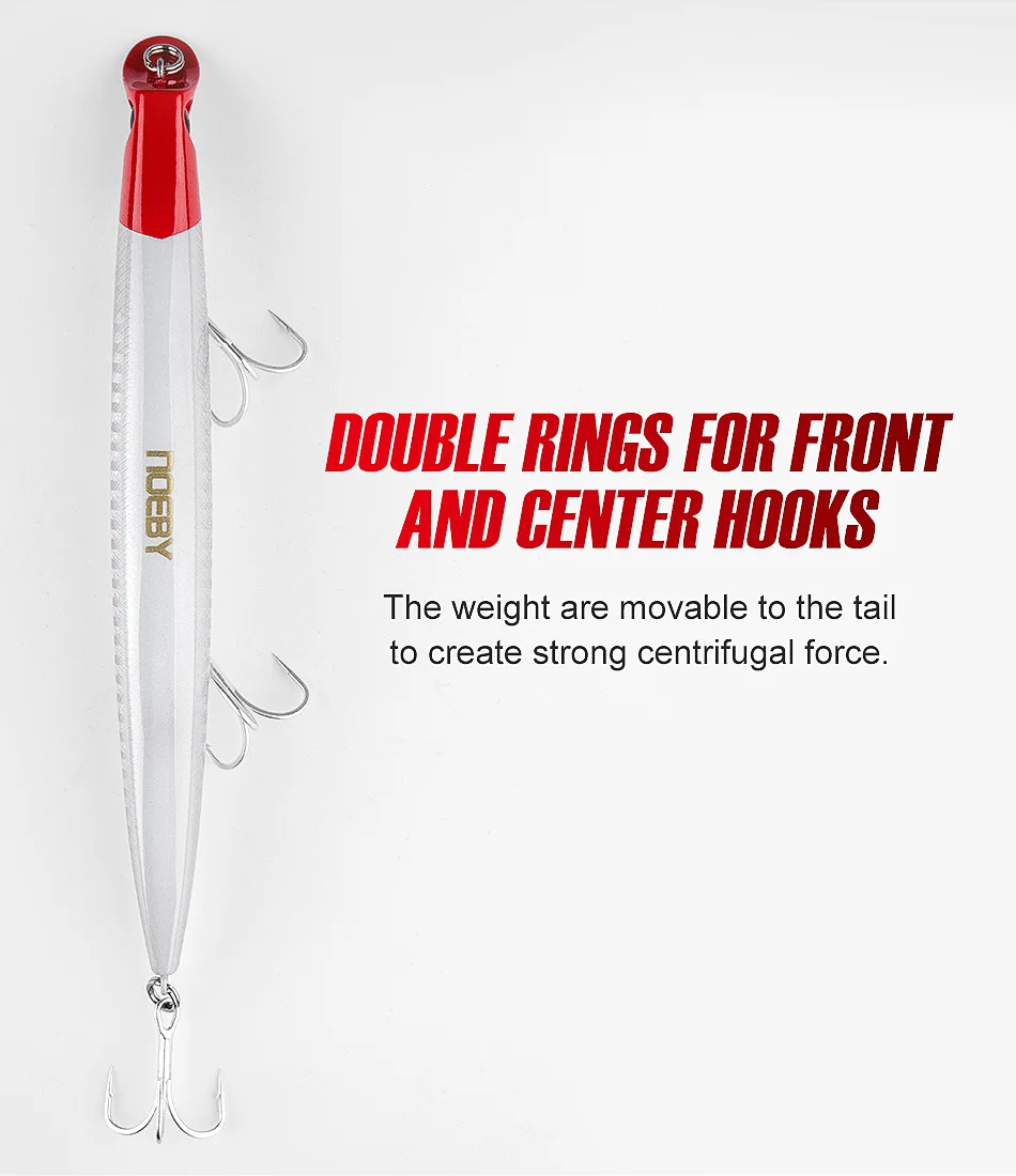 Cebo espectacular, acabado impecable, voy a comprar otros colores de nuevo. Tamaños y peso beats con la descripción.