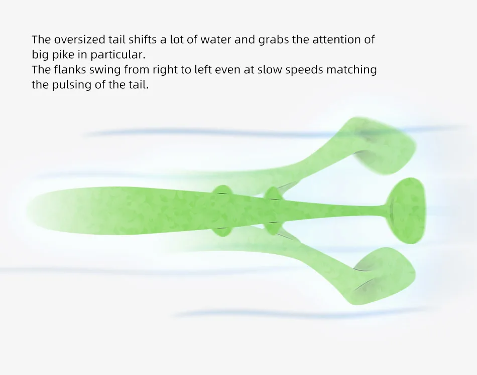 La cola de gran tamaño cambia mucha agua y atrae la atención del lucio grande en particular.