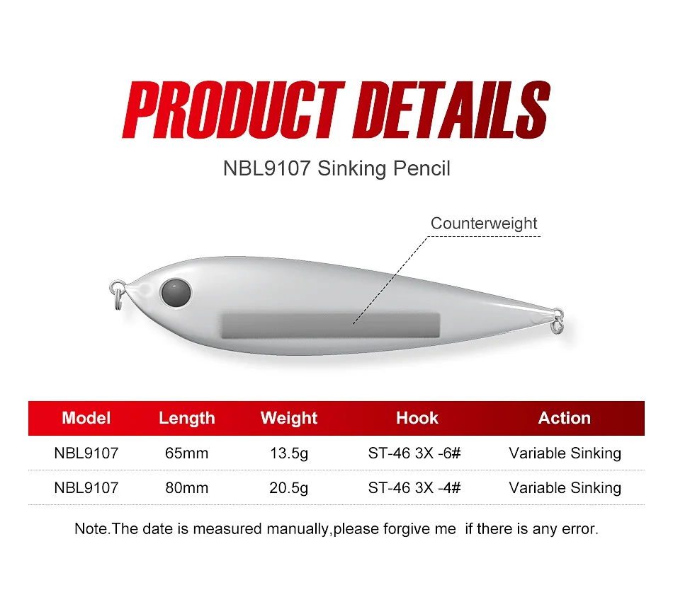 Señuelo de pesca Noeby, señuelo de lápiz que se hunde, 80mm, 21g, cebo largo de fundición, Wobblers, cebo duro Artificial para señuelo de pesca de lubina