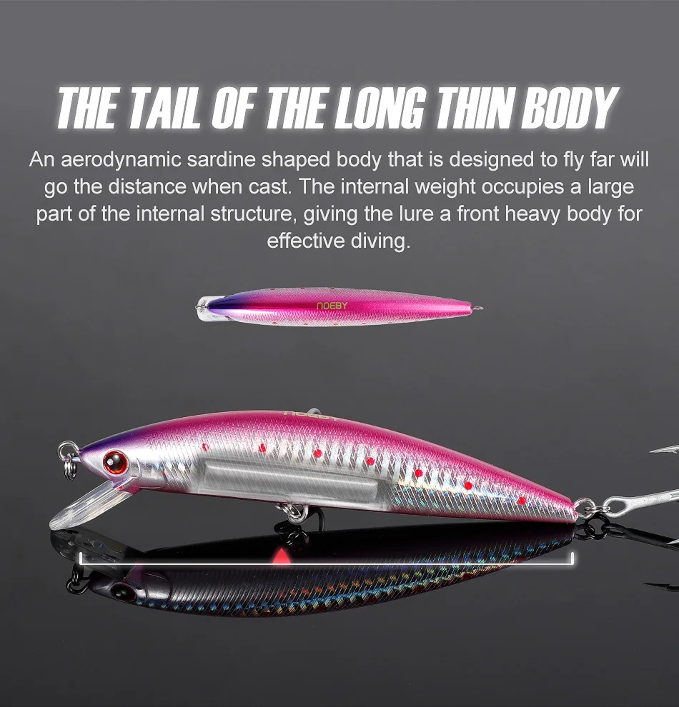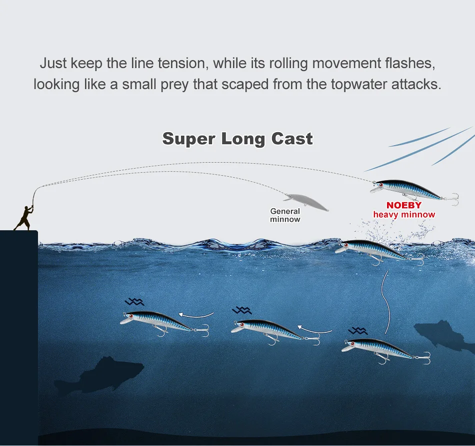 NOEBY-señuelo de pesca Artificial, cebo duro de fundición larga, 120mm, 44g, Minnow