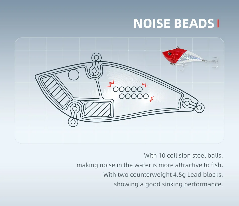 Con 10 bolas de acero de colisión, hacer ruido en el agua es más atractivo para los peces, con 2 bloques de plomo contrapeso de 4,5 g, que muestran un buen rendimiento de hundimiento.