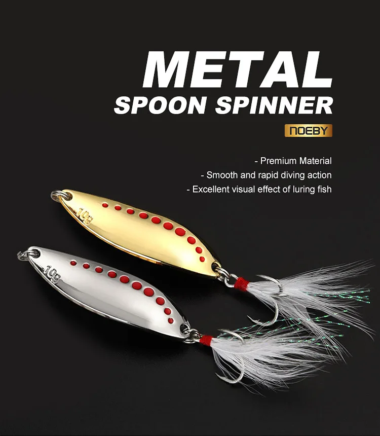 NOEBY Spinner cuchara señuelo Metal Spinner cebo duro 10g 15g 20g plateado dorado Jig señuelo de pesca cuchara con lentejuelas de plumas