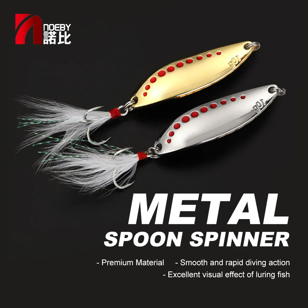NOEBY Spinner cuchara señuelo Metal Spinner cebo duro 10g 15g 20g plateado dorado Jig señuelo de pesca cuchara con lentejuelas de plumas