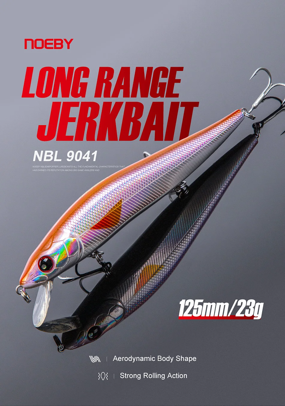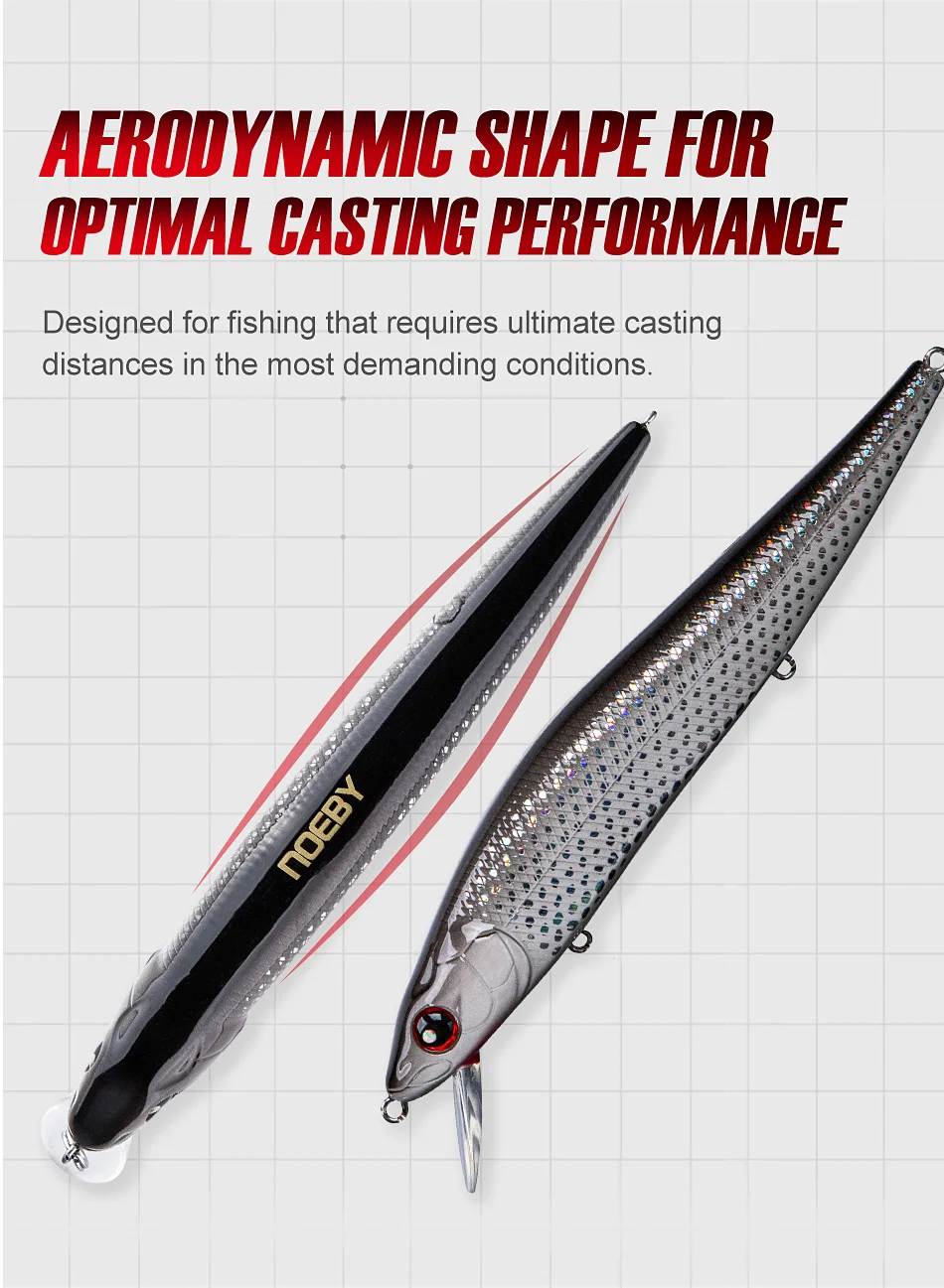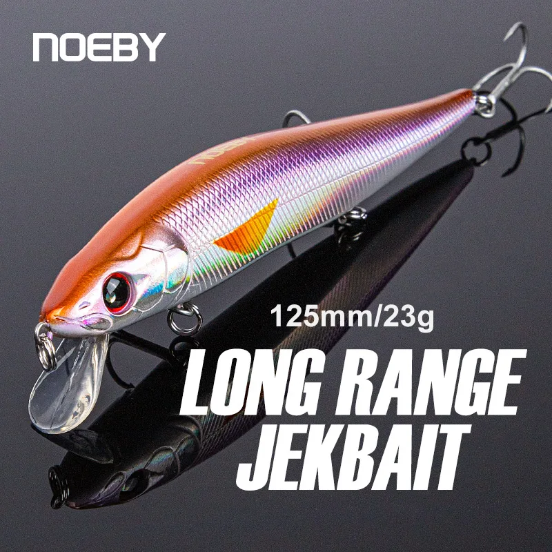 NOEBY Jerkbait Minnow señuelo de pesca 125mm 23g cebos artificiales flotantes de largo alcance 9041 sonajero rodante Wobblers aparejos de pesca