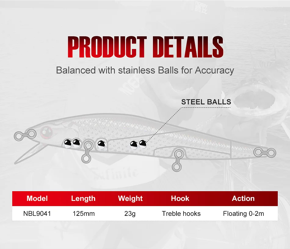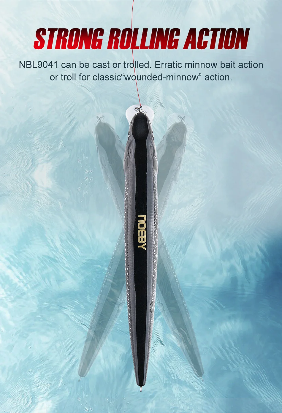 NBL 9041 puede ser fundido o trolled. Cebo de pececillo errático o Troll para la clásica acción de pececillo herido.
