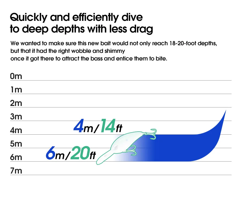 Queríamos asegurarnos de que este nuevo cebo no solo alcance profundidades de 18 a 20 pies, sino que tenía la oscilación y el brillo adecuados una vez que haya hecho allí para atraer al lubina y atraerlos a morder.