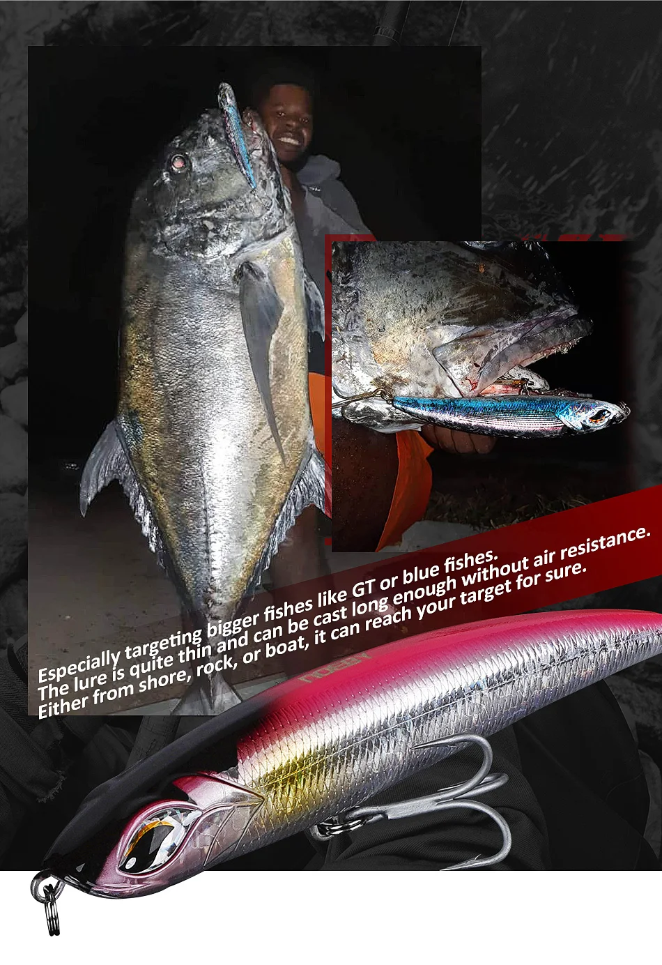 Dirigirse especialmente a peces más grandes como GT o peces azules.