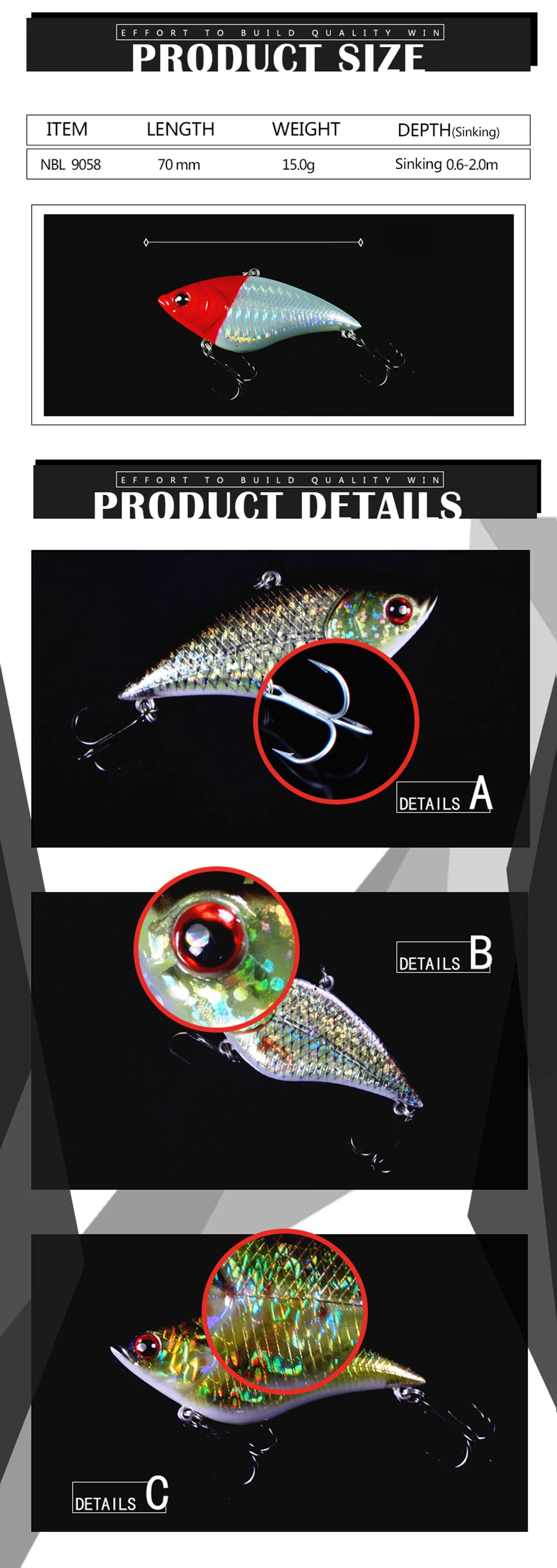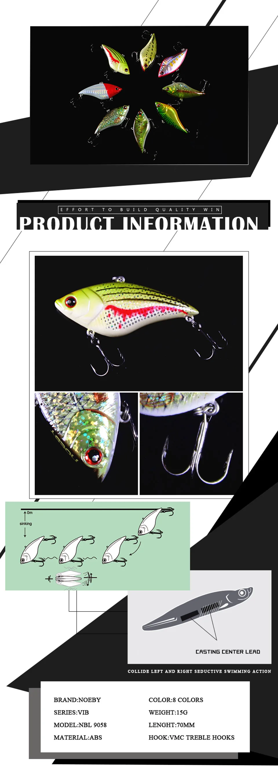 NOEBY-señuelo de pesca de Rattlins, señuelo de pesca duro de 70mm y 15g, Wobblers de hundimiento VIB para Lucio Crankbait, Señuelos de Pesca de invierno 9058