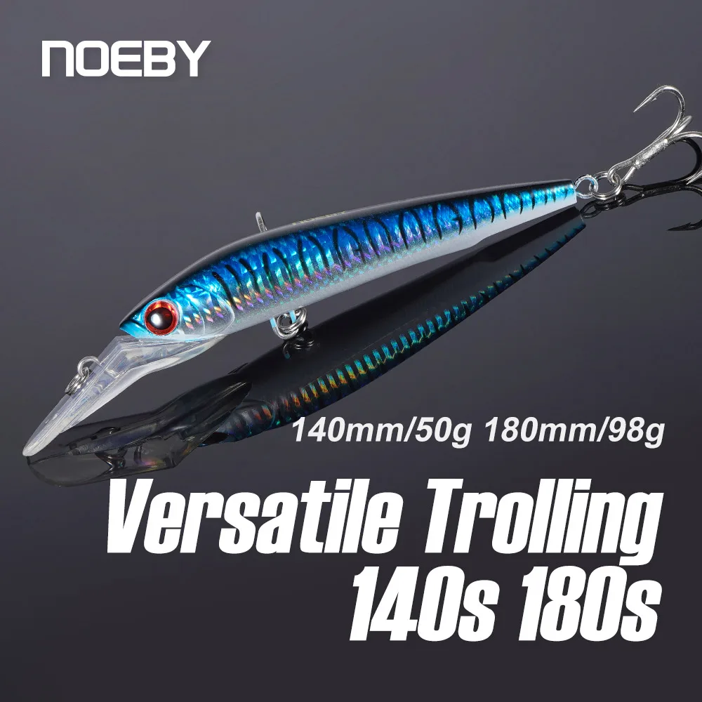 NOEBY Señuelo de pesca de pececillo con curricán grande, 140mm, 50g, 180mm, 98g, Wobblers que se hunde, cebo duro para Lucio, lanzamiento largo, señuelos de pesca de mar