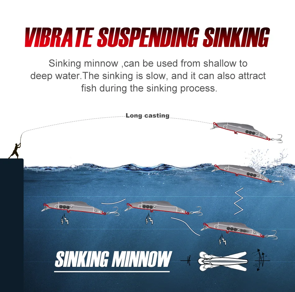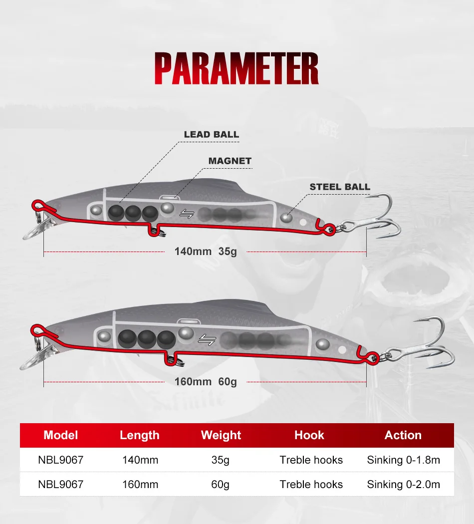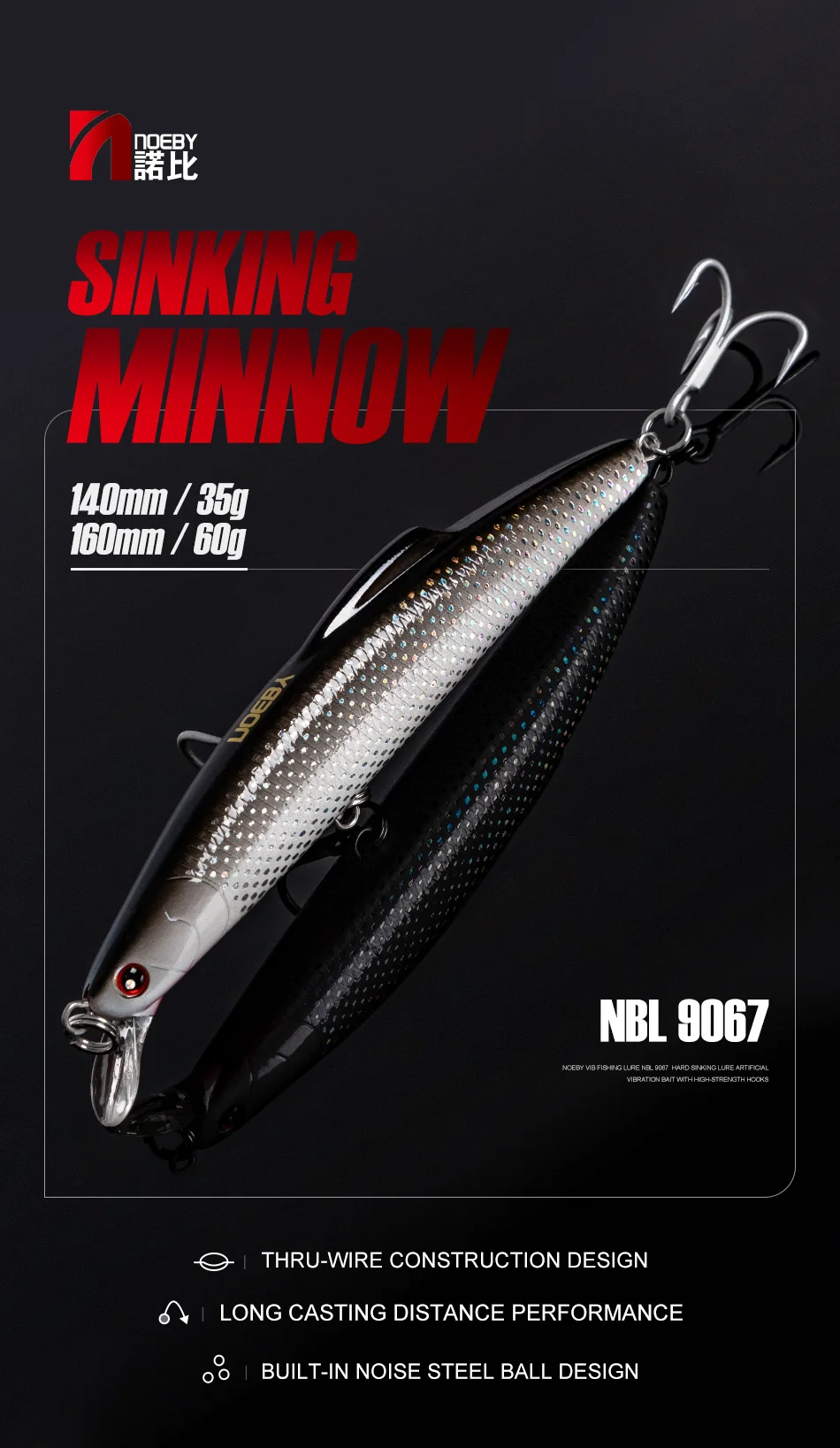 NOEBY Sinking Minnow Fishing Lure 14cm 35g 16cm 60g Trolling Sinking Wobblers Artificial Hard Bait Pike Tuna Fishing Tackle