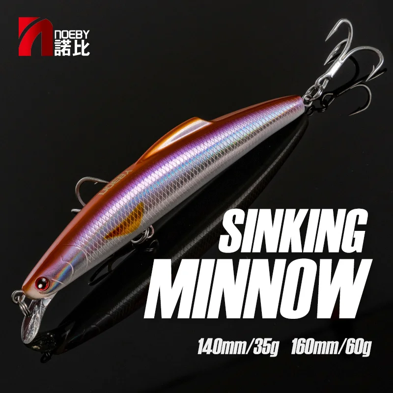 NOEBY Señuelo de pesca de pececillo hundido 140mm 35g 160mm 60g Cebo duro artificial de pececillo suspendido 9067 Wobblers para señuelo de pesca de Lucio