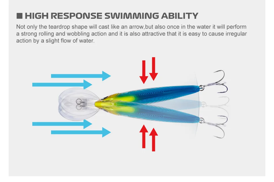 A través de la construcción de alambre utiliza una pieza sólida de alambre pesado que va desde la nariz del señuelo, a través del gancho de la cola para una mayor resistencia y durabilidad.