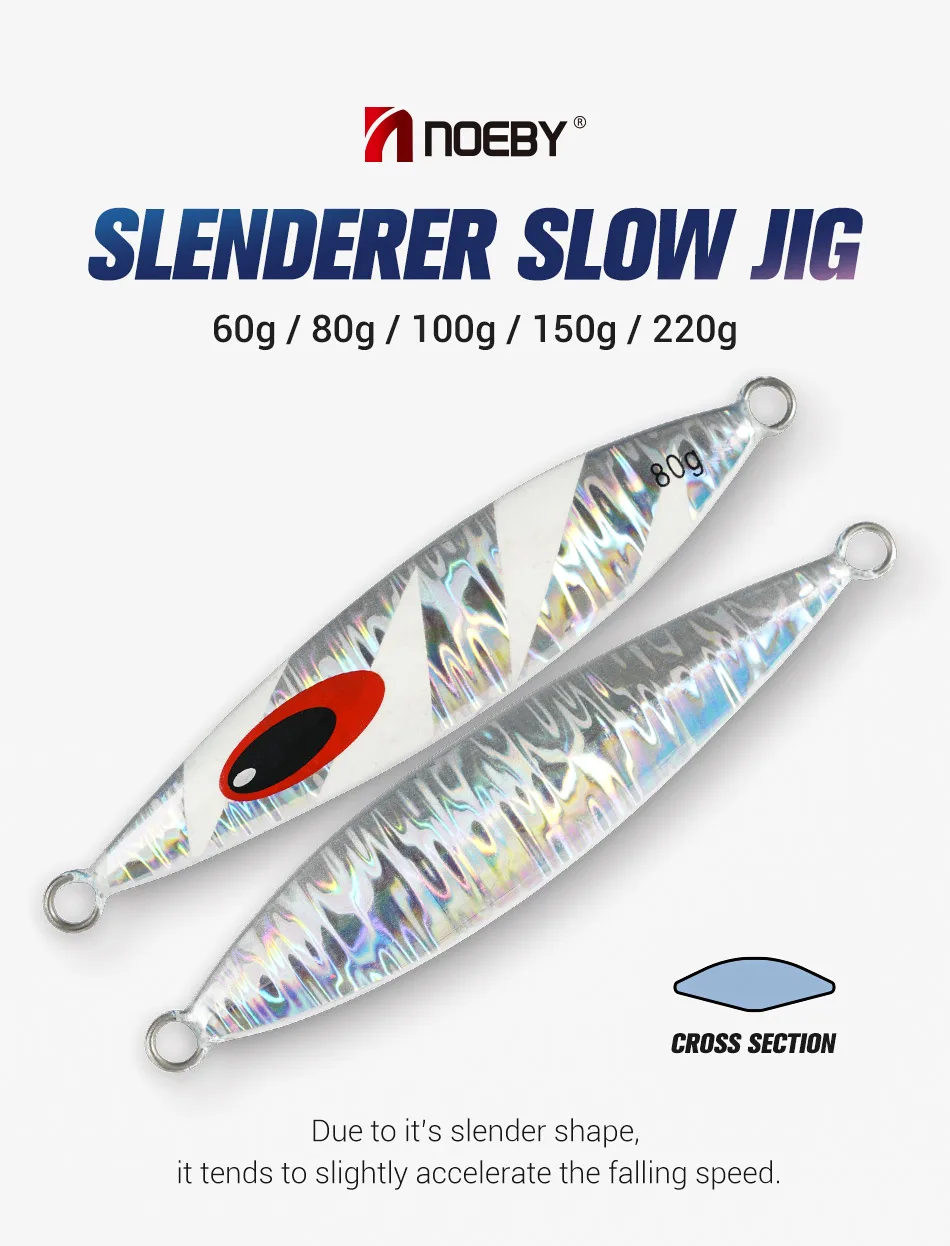 Señuelo de pesca Noeby Metal Jig 60g 80g 100g 150g 220g cuchara Jigging lento cebo duro Artificial para señuelos de pesca en aguas profundas