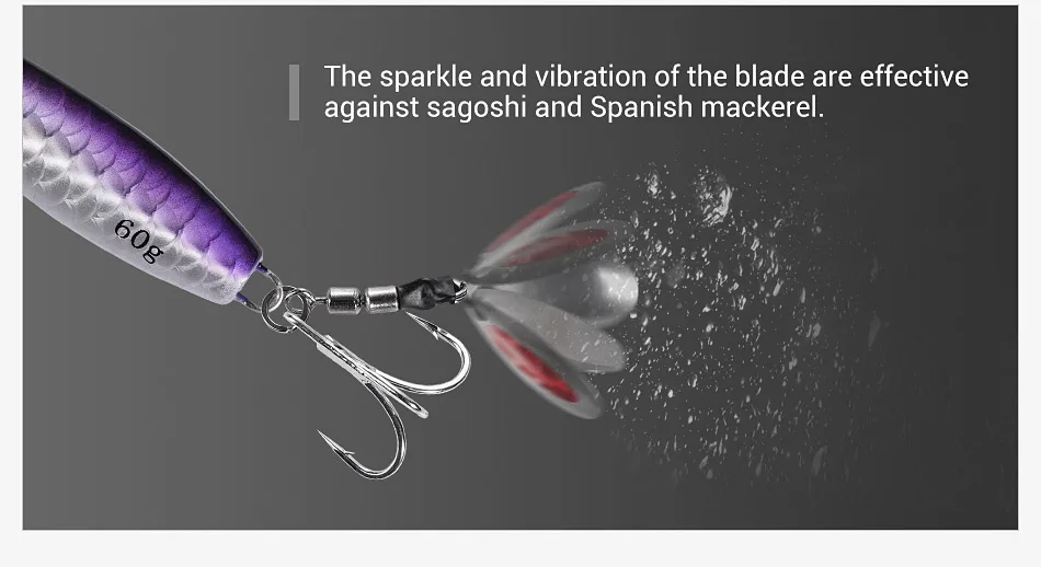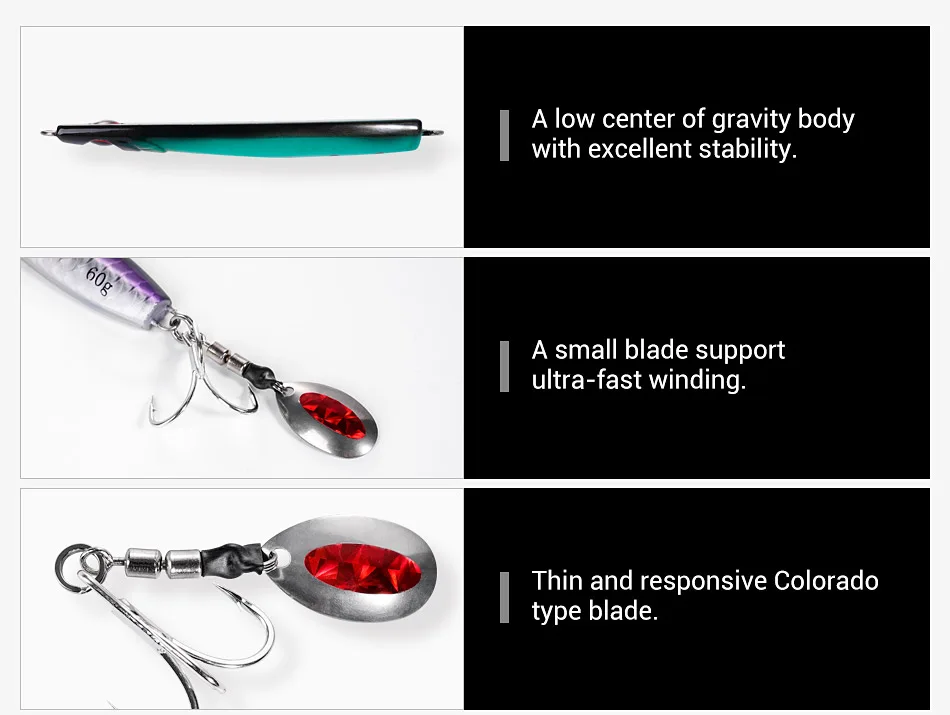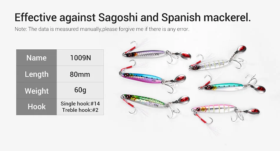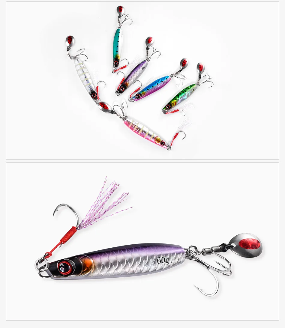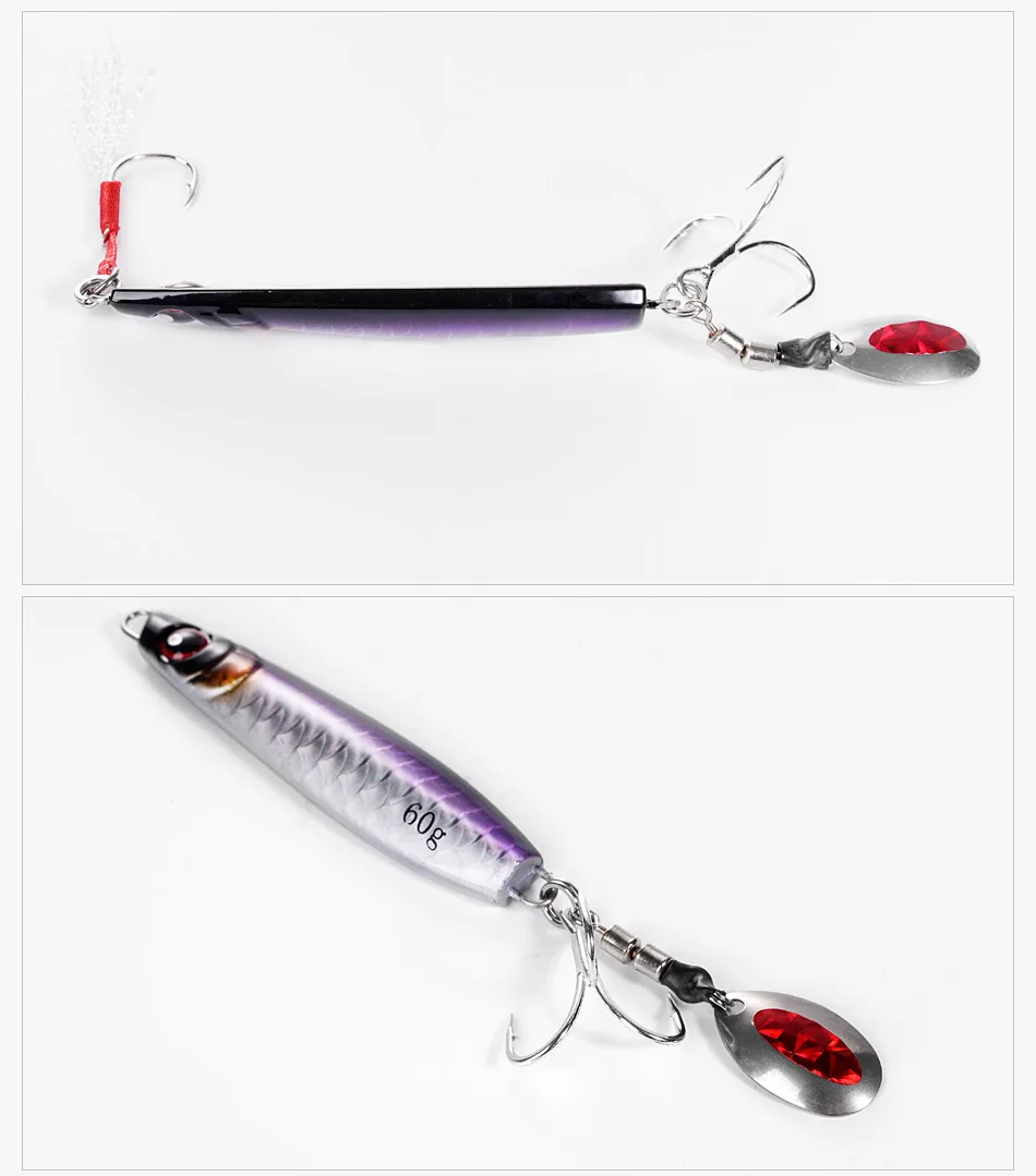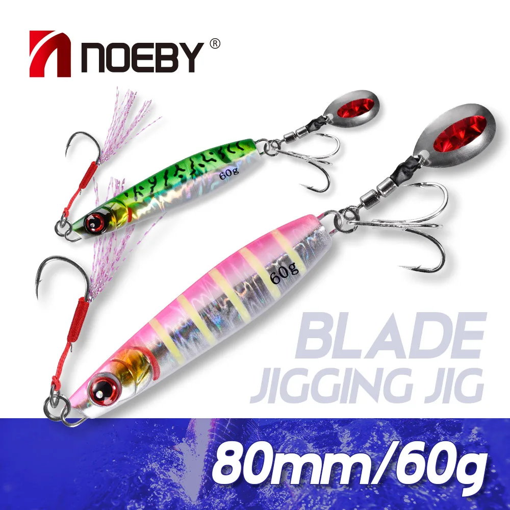 Noeby señuelo de pesca de plantilla de Metal, cebo duro Artificial, carrete giratorio, fundición de cebo, Señuelos de Pesca de agua salada, hoja de 60g