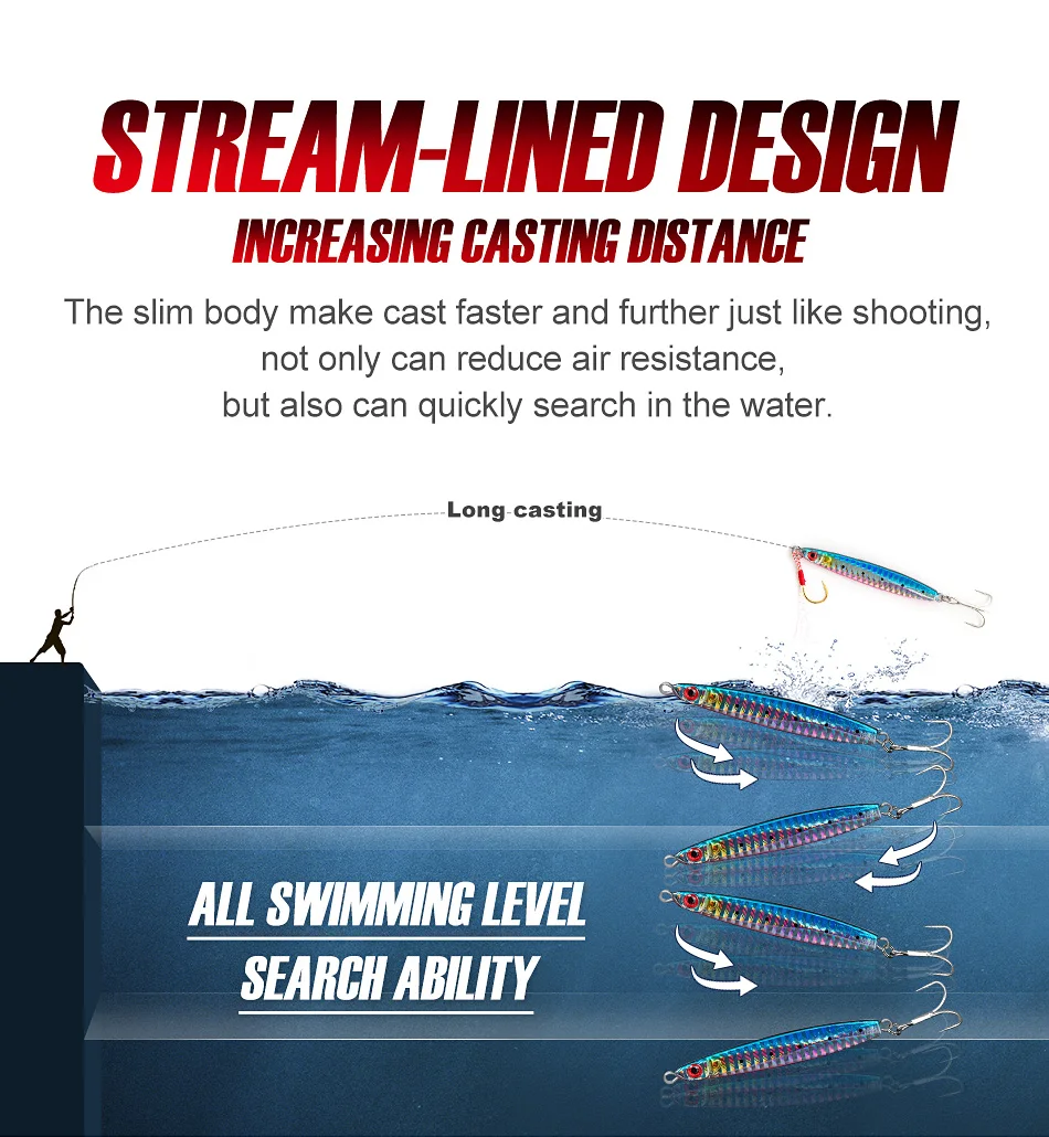 4.Caich una gama wida de peces de agua salada y dulce, con una acción de jgging metódica o sobre una rectitud.