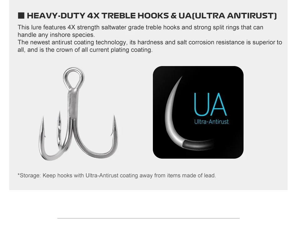 4 ganchos agudos resistentes y UA(ultra antioxidante).