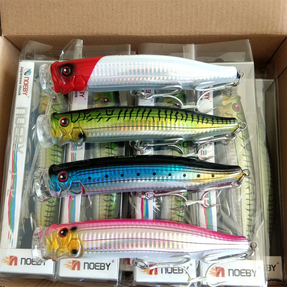 Noeby-señuelo de pesca Popper de 4 piezas, 150mm, 55g, Topwater, Wobblers 9246 cebos artificiales duros, Señuelos de Pesca de agua salada