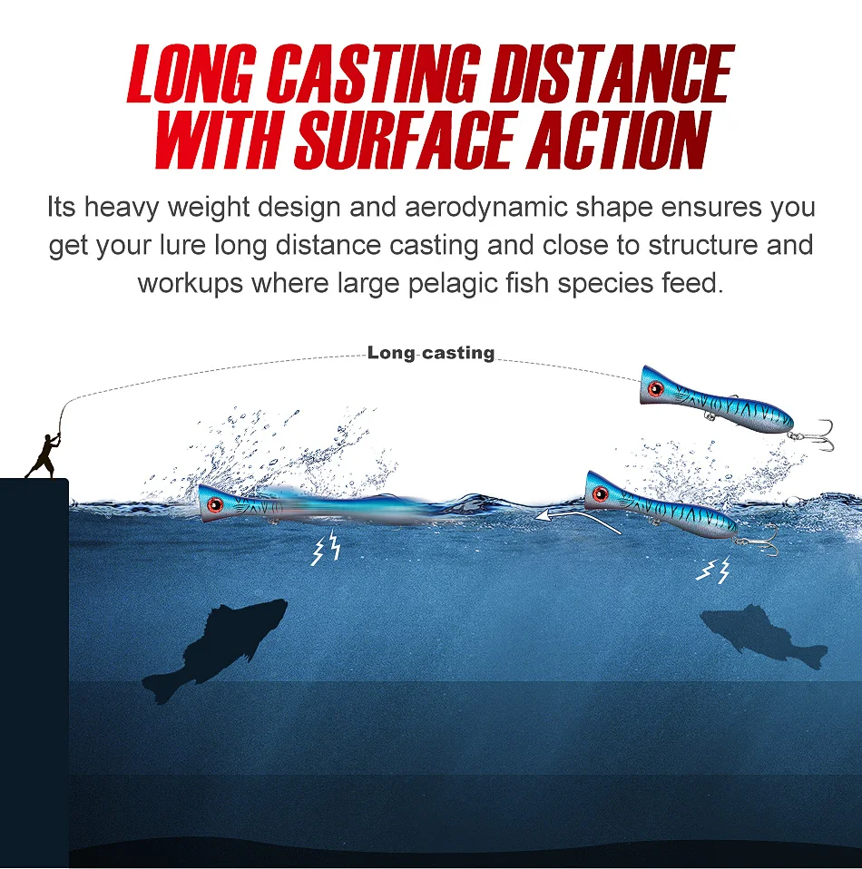 Noeby Big Game Popper señuelo de pesca 205mm 133G Topwater Popper cebo duro Artificial 4/5X anzuelos para mar pesado GT atún señuelo de pesca