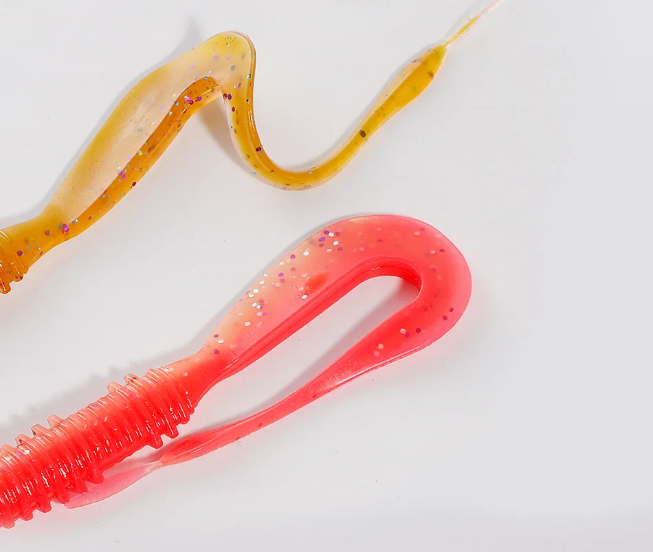 NOEBY-señuelo de pesca de silicona suave, 6cm, 8cm, 10cm, 14cm, cola larga, gusano de rizos artificiales, cebo suave, Swimbaits para señuelos de pesca de lubina
