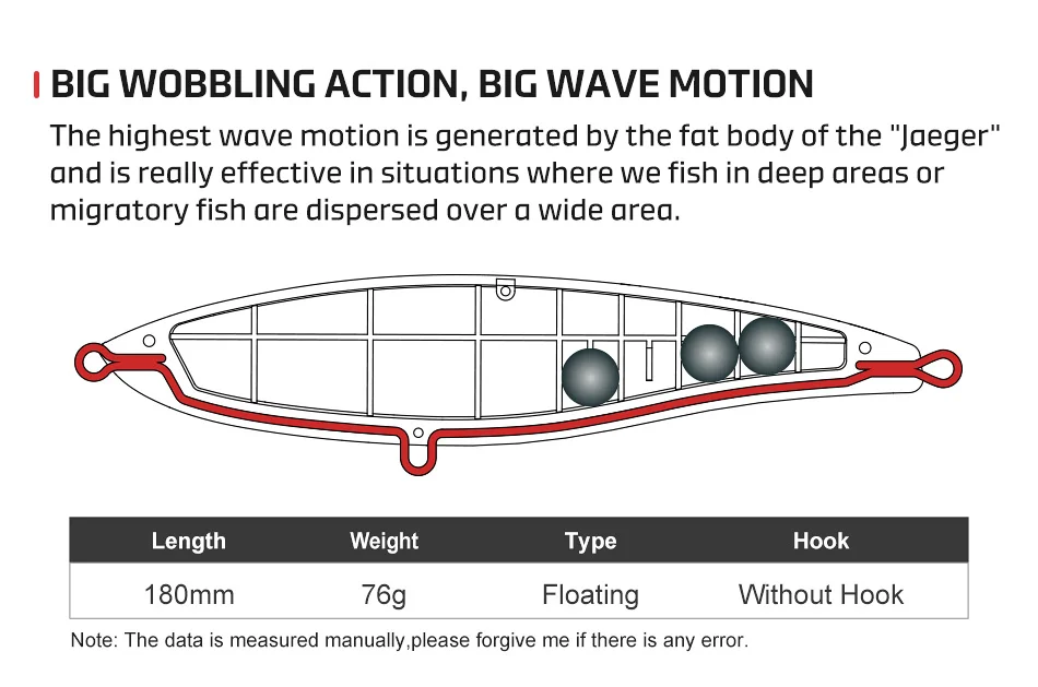 El movimiento de olas más alto es generado por el cuerpo gordo del "Jaeger" y es realmente eficaz en situaciones en las que pesamos en zonas profundas o peces migratorios se dispersan sobre un área amplia.