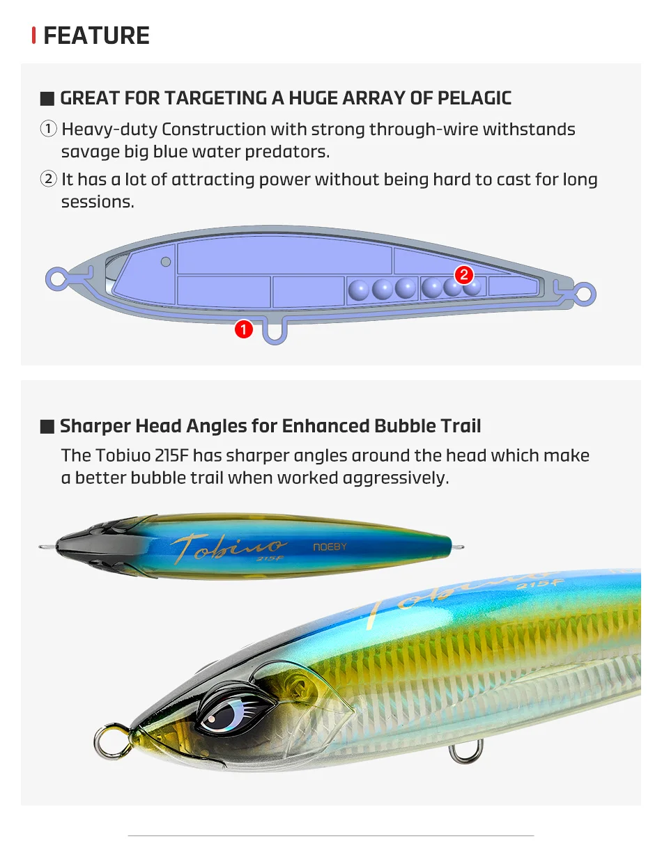 Noeby-señuelo de pesca de cebo adhesivo para buceo, 215mm, 130g, Wobbler flotante, cebo duro Artificial para pesca de agua salada GT Tuna Kingfish