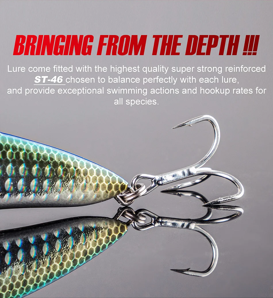 El señuelo viene equipado con el ST-46 reforzado súper fuerte de la más alta calidad elegido para equilibrar perfectamente con cada señuelo,