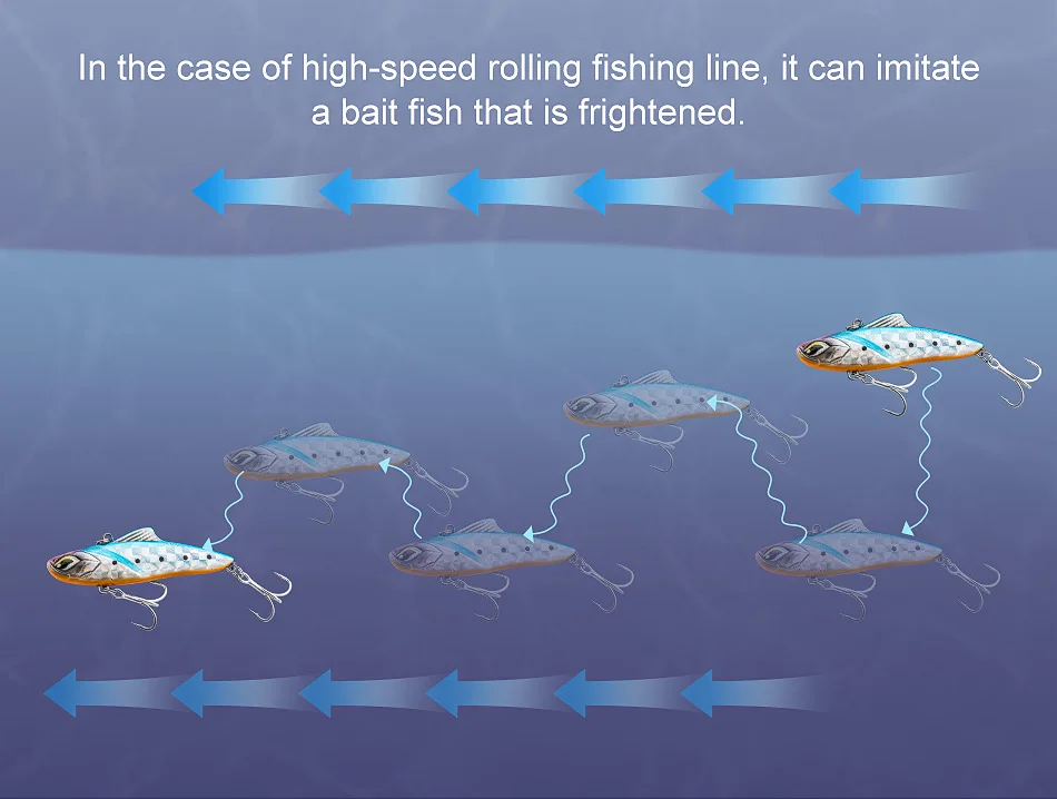 En el caso de la línea de pesca rodante de alta velocidad, puede imitar a un pez cebo que tiene miedo.