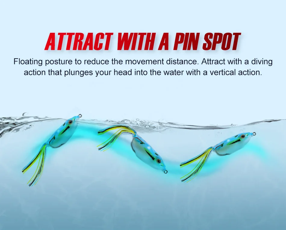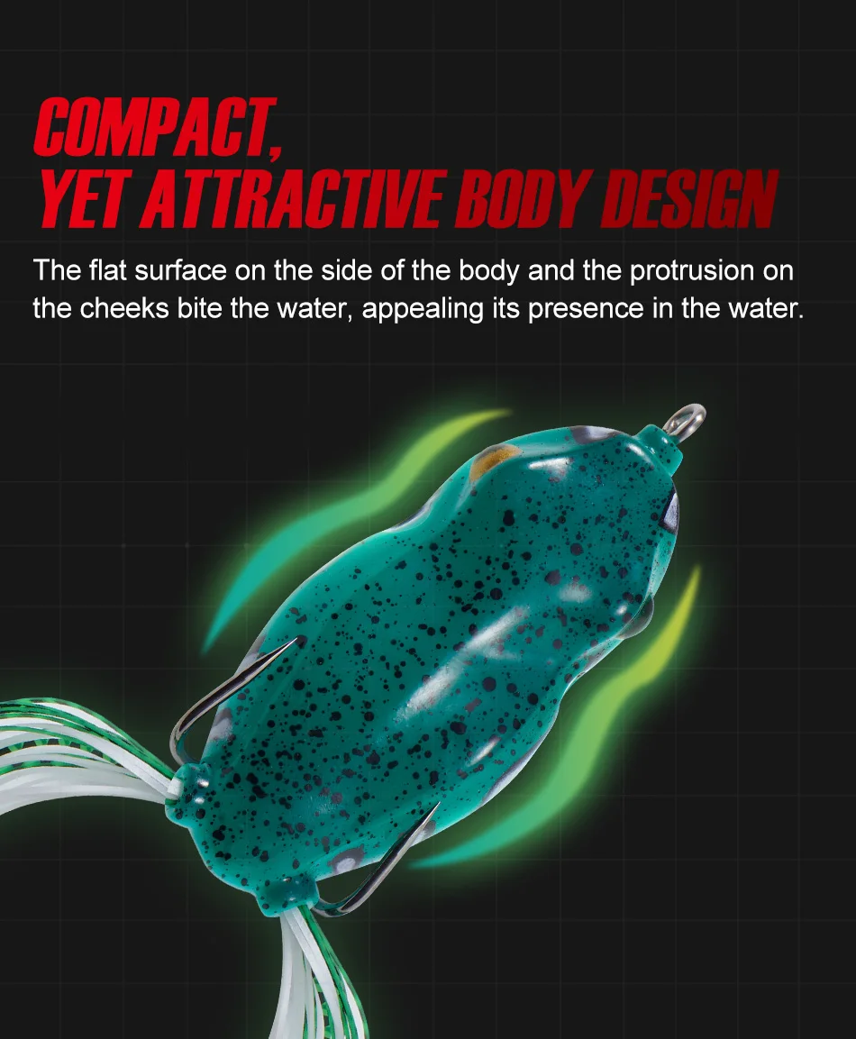 Noeby Señuelo superior de rana para caminar con cuerpo hueco y cebos blandos para sapo con anzuelos sin malezas para señuelos de lubina almizcle con pez perro con cabeza de serpiente