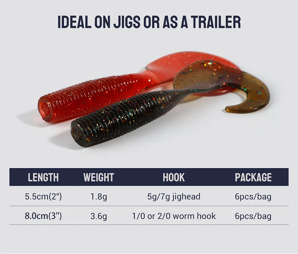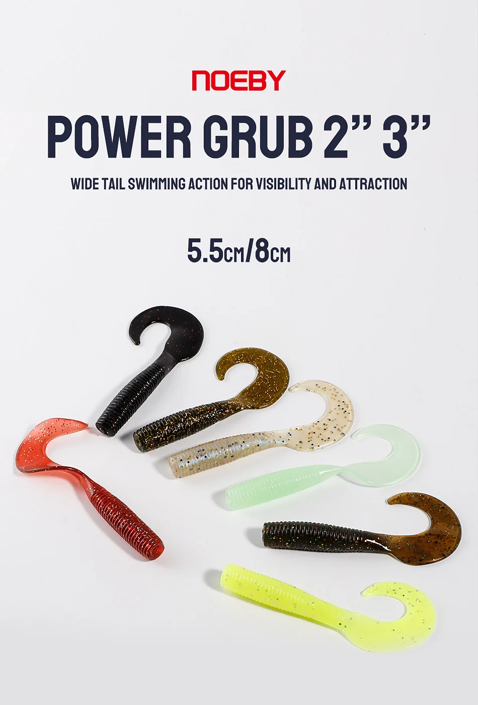 Noeby-señuelo suave de silicona para pesca Artificial, cebos blandos de gusano de cola, Swimbait para lubina y carpa, 5,5 cm, 8cm, 6 unidades