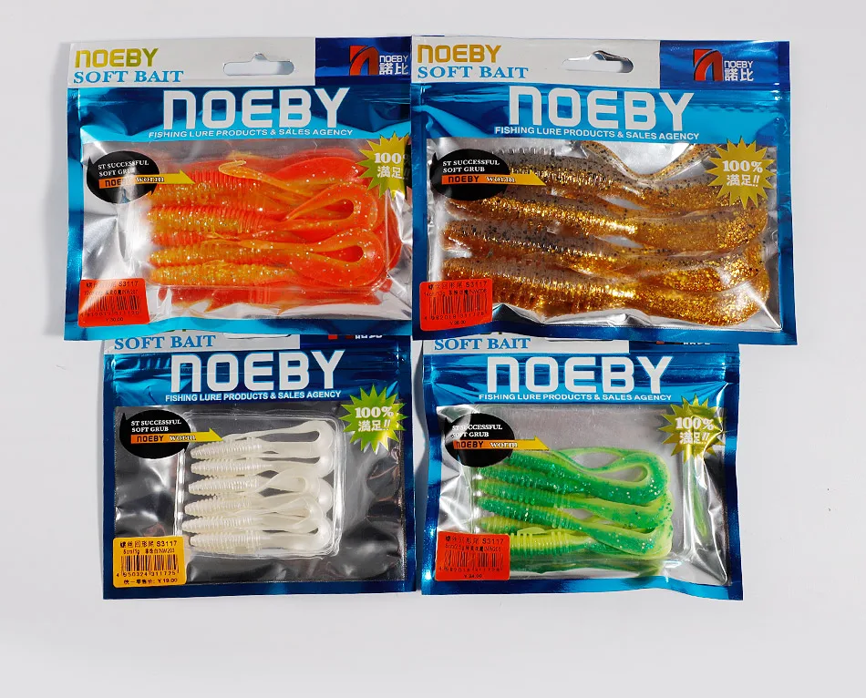 Noeby, juego de señuelos blandos de gusano rizado, 14cm, 10cm, 8cm, 6cm, cola larga, Wobblers, olor a pescado, trucha, Lucio, cebo de pesca Leurre Souple