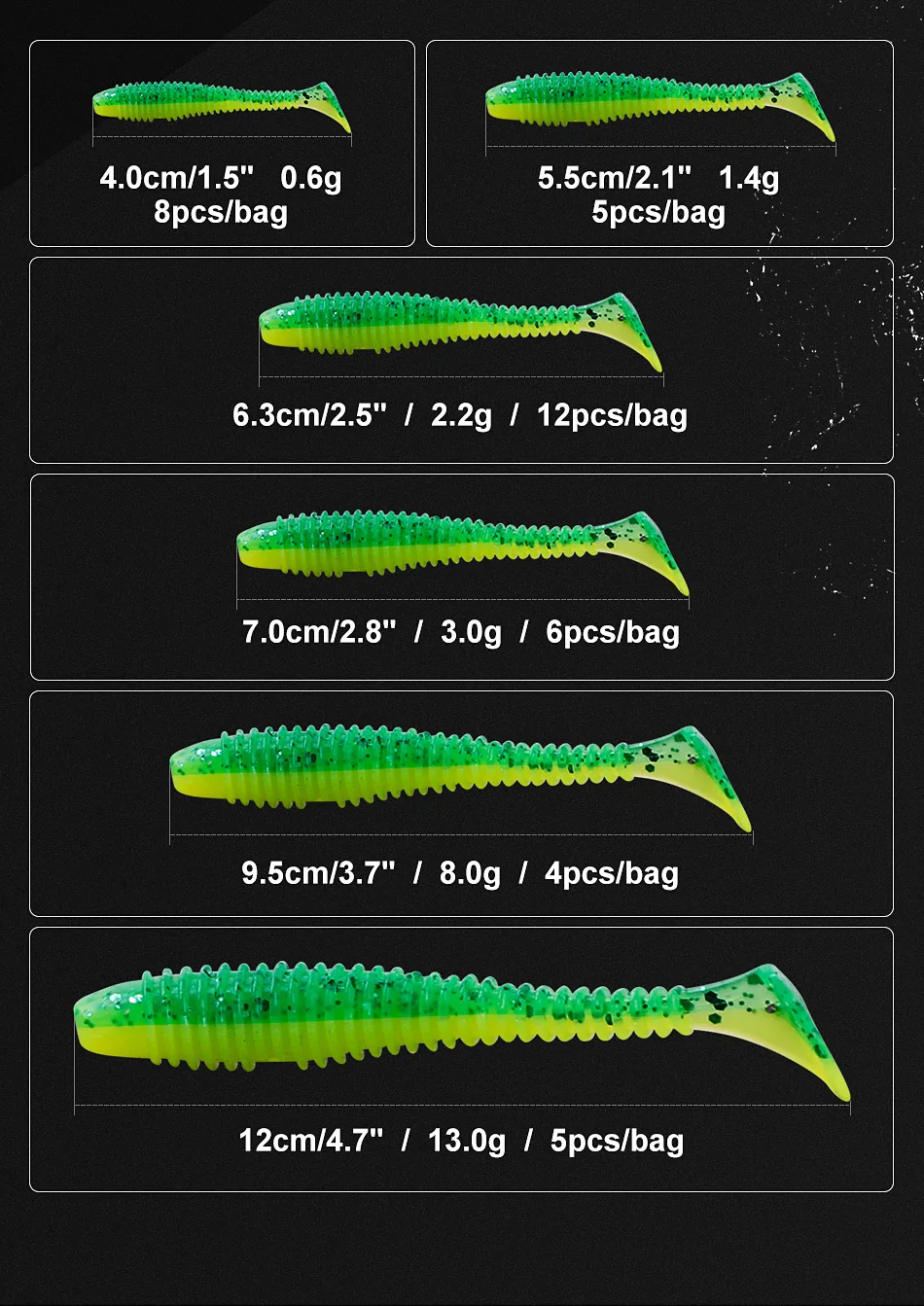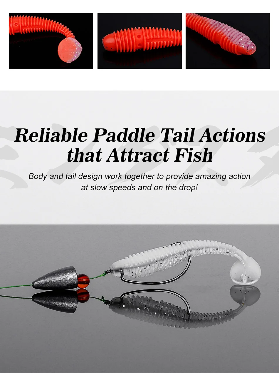 ¡Las acciones de cola de paleta confiables que atraen a los peces, el cuerpo y el diseño de cola trabajan juntos para proporcionar una acción increíble a velocidades lentas y en la caída!