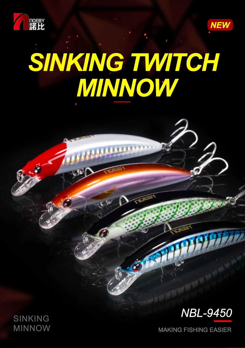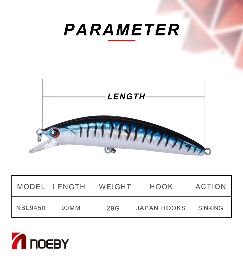 NOEBY NBL9450 Minnow cebo duro 90mm 29G ABS plástico pesca señuelo hundimiento 0,6-2,5 m Isca Artificial Para Pesca Leurre Peche