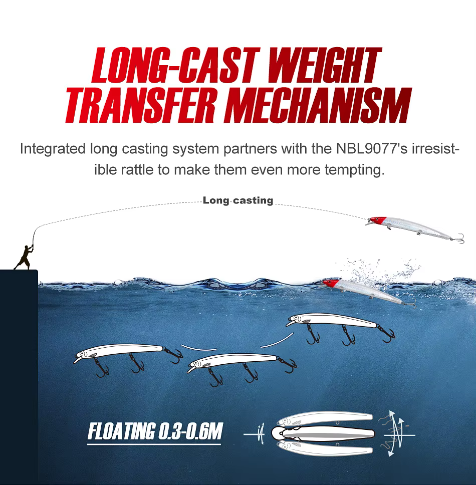 4. Se puede lanzar NBL 9077. Acción de cebo de pececillo errático o arrastre para la Acción clásica de "minnow herido-".