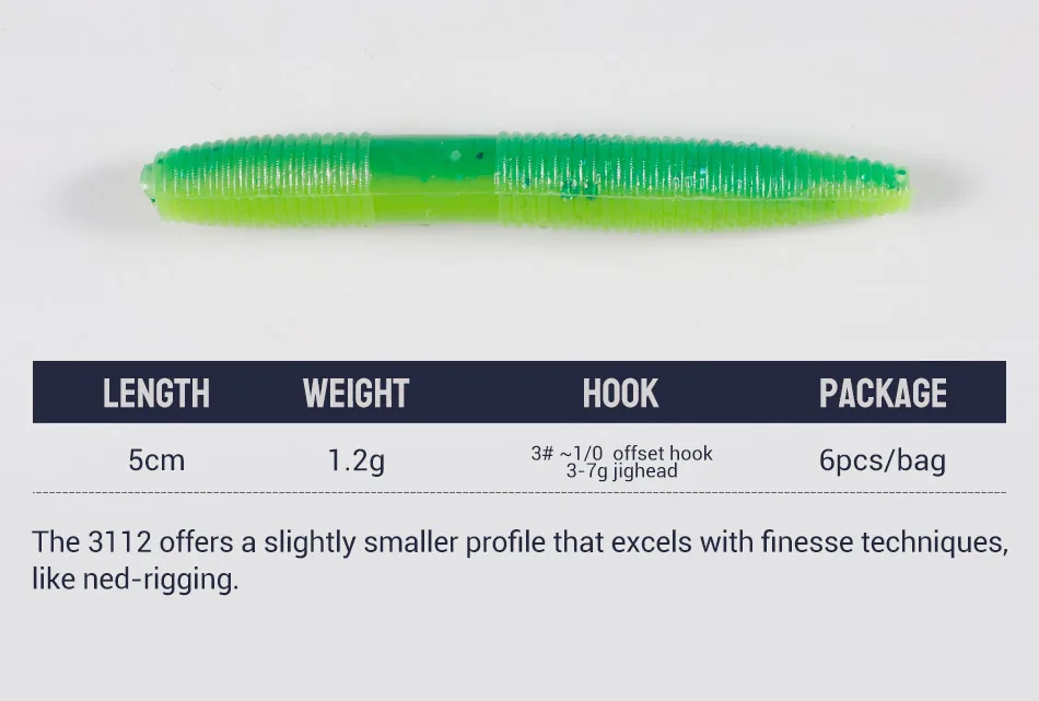 NOEBY-Señuelos de Pesca de gusano suave de silicona, cebos artificiales, Señuelos de Pesca de lubina, aparejo de Ned, señuelos de gusano, aparejo de Texas, 5cm, 1,2g,6 piezas