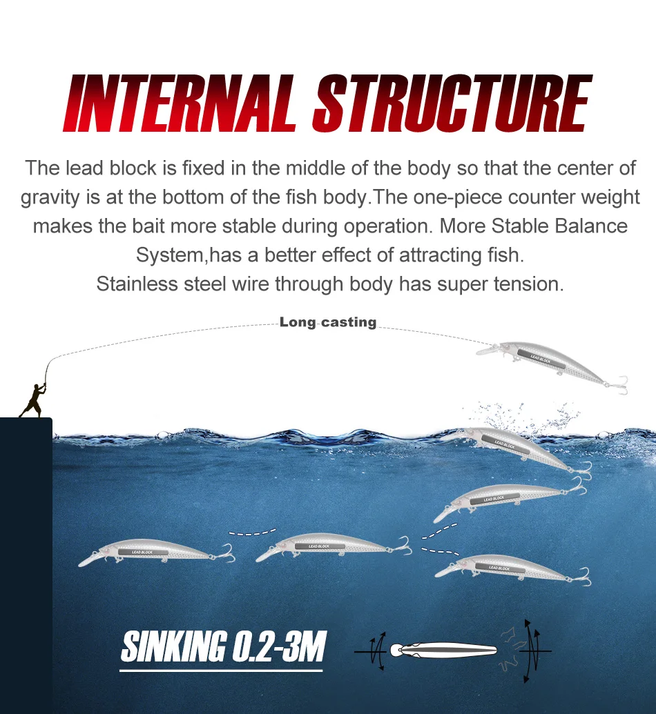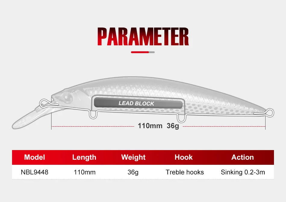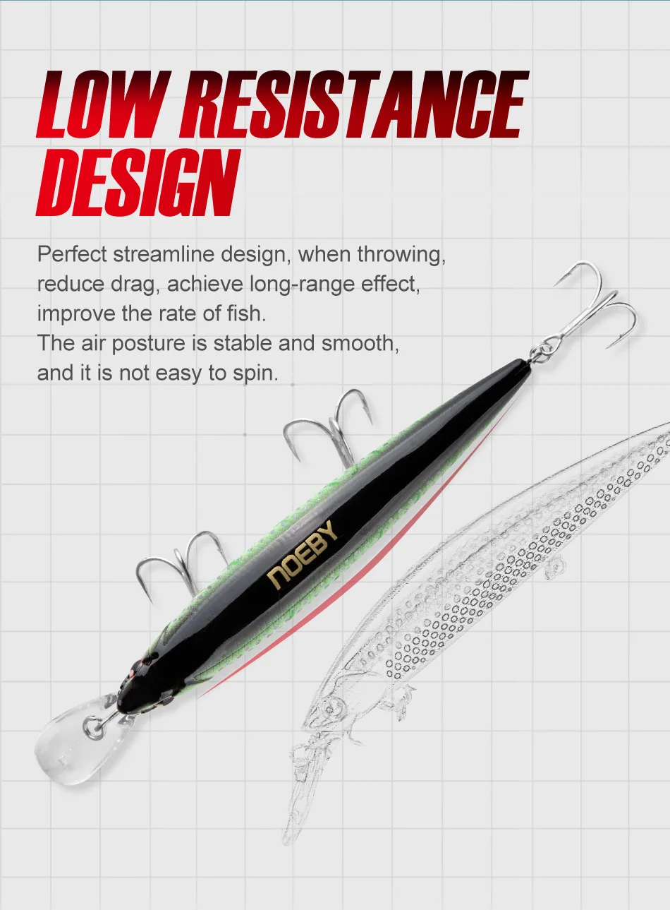 NOEBY Minnow Fishing Lures 110mm 36g Sinking 0.2-3m Wobbler Jerkbait Artificial Hard Bait Sea Bass Pike Winter Fishing Tackle