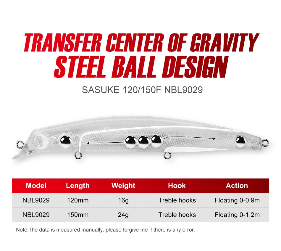 Señuelos de Pesca Noeby Sasuke Lipless Minnow 12cm 16g 15cm 24g flotantes cebos duros artificiales para Lucio señuelo de pesca
