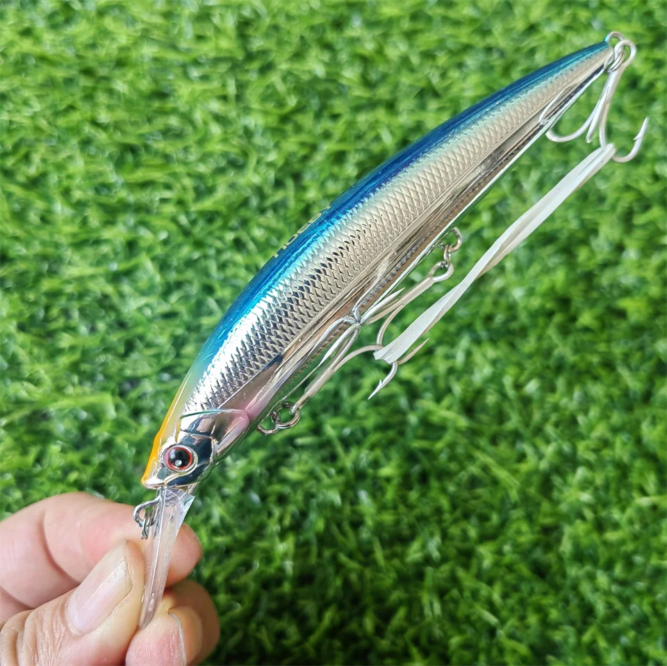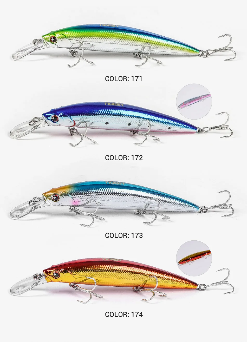 Un cebo fino con una orientación superior y un movimiento fluido, con una distancia de vuelo abrumadora, captura áreas a las que no se puede llegar con pececillos normales.