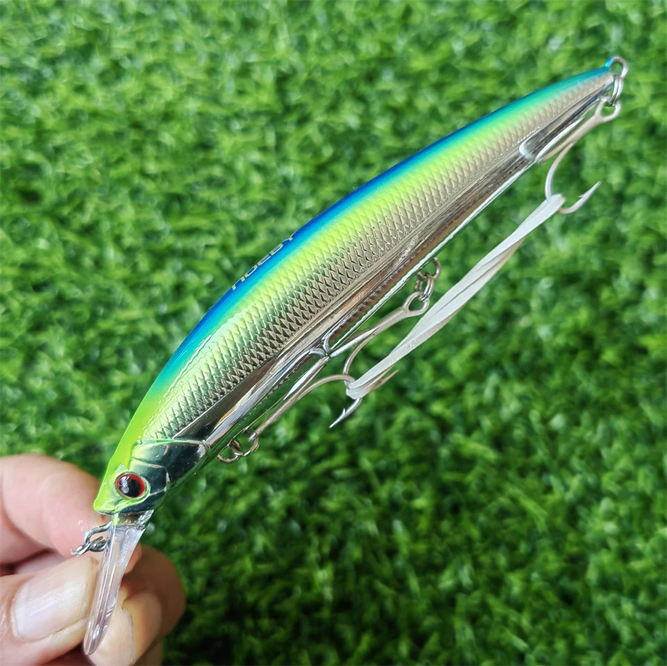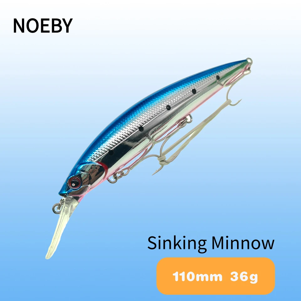 Señuelos de pesca de pececillo pesado Noeby 110mm 36G hundimiento galvanoplastia Jerkbait cebo duro Artificial para aparejos de lubina señuelo de pesca