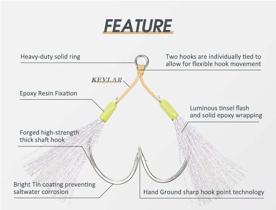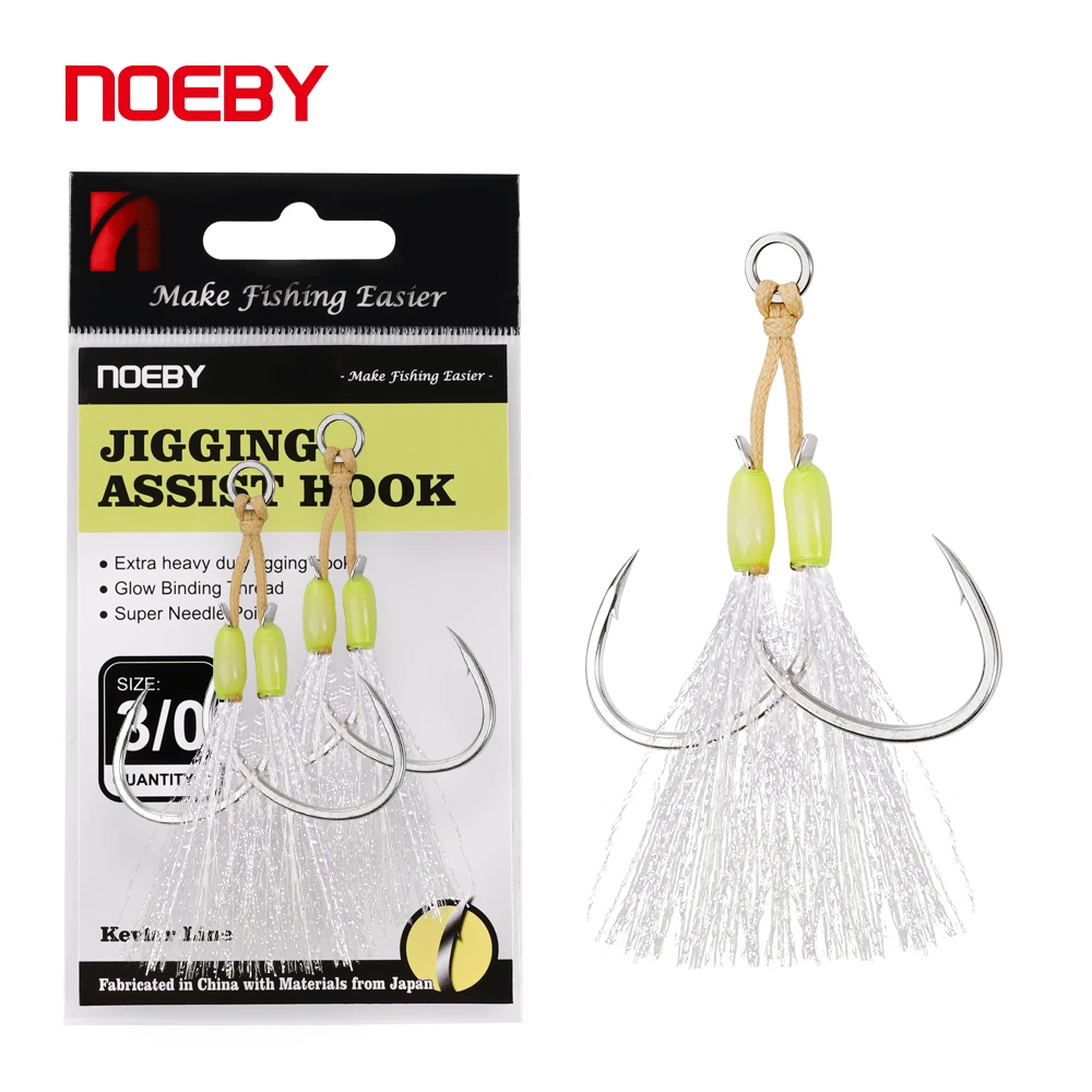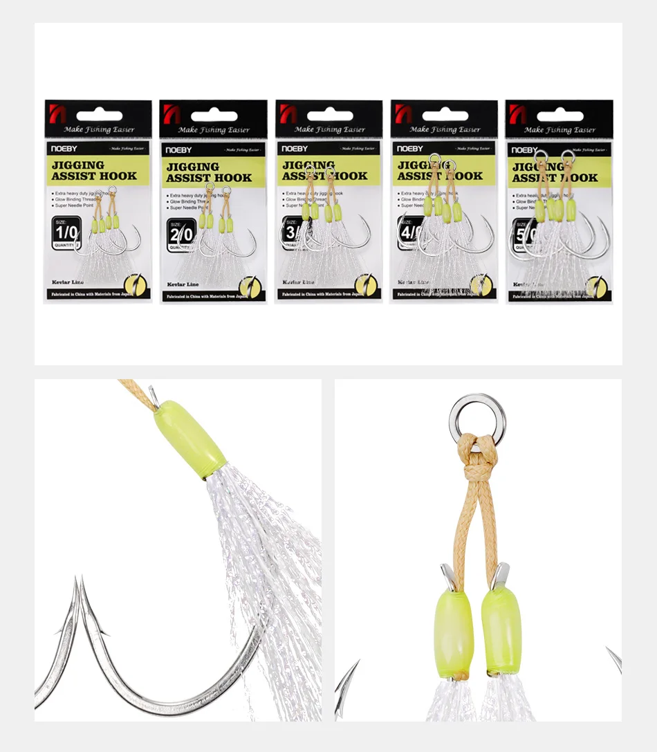 Noeby Slow Pitch Jigging Assist Rig Haken 2 Stuks 1/0 2/0 3/0 4/0 5/0 Kevlar Lijn Schacht Punt Langzame Jigs Zeevissen Haken