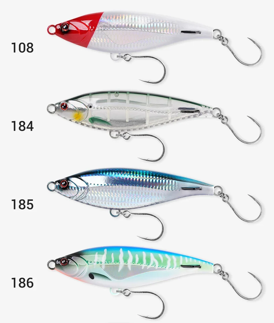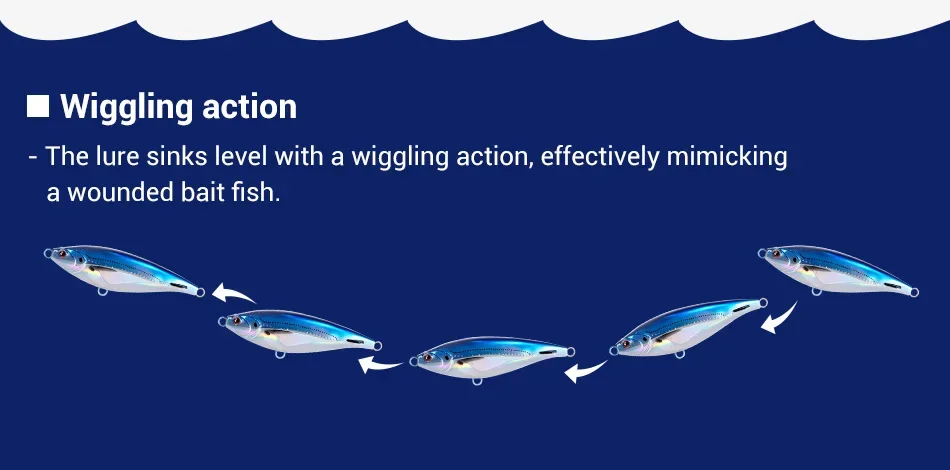 El señuelo se hunde nivelando con una acción de movimiento, imitando eficazmente un pez cebo herido.