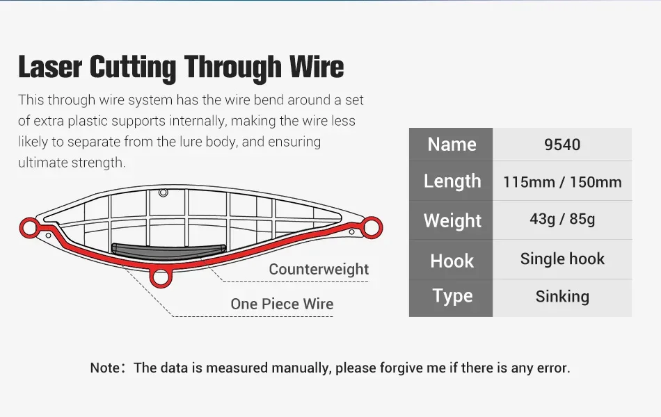 Este sistema de alambre pasante tiene la curva del cable alrededor de un conjunto de soportes de plástico adicionales en el interior, lo que hace que el cable sea menos probable que se separe del cuerpo del señuelo y garantiza la máxima resistencia.