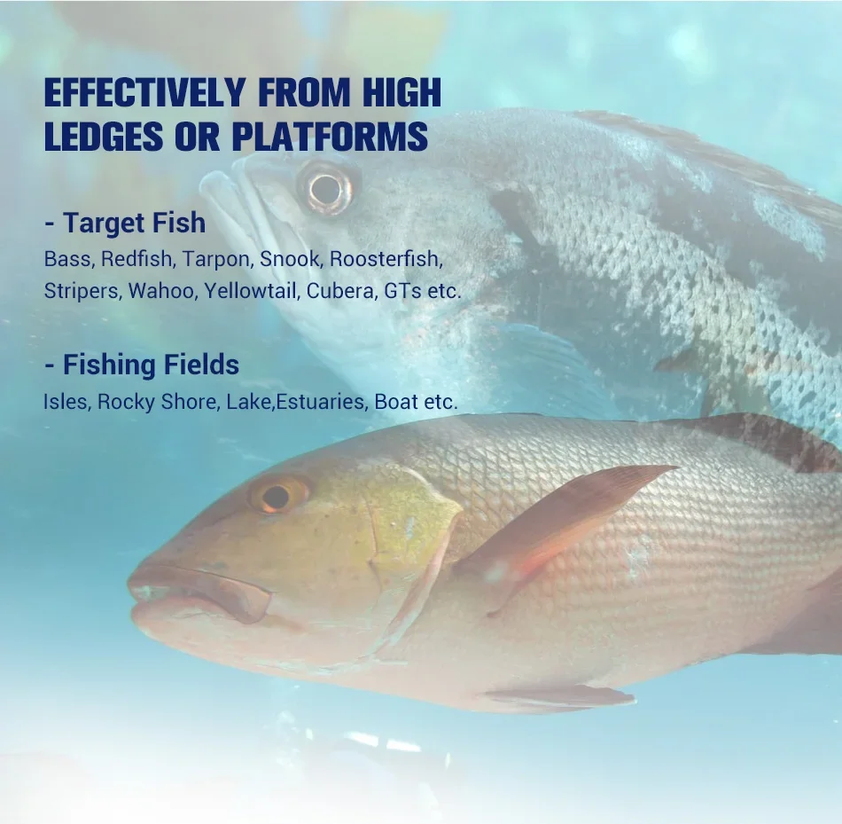 Peixe objetivo: lubina, pez rojo, tarpon, serpiente, pez rodado, stripers, Wahoo, cola amarilla, Cubera, GTs, etc.