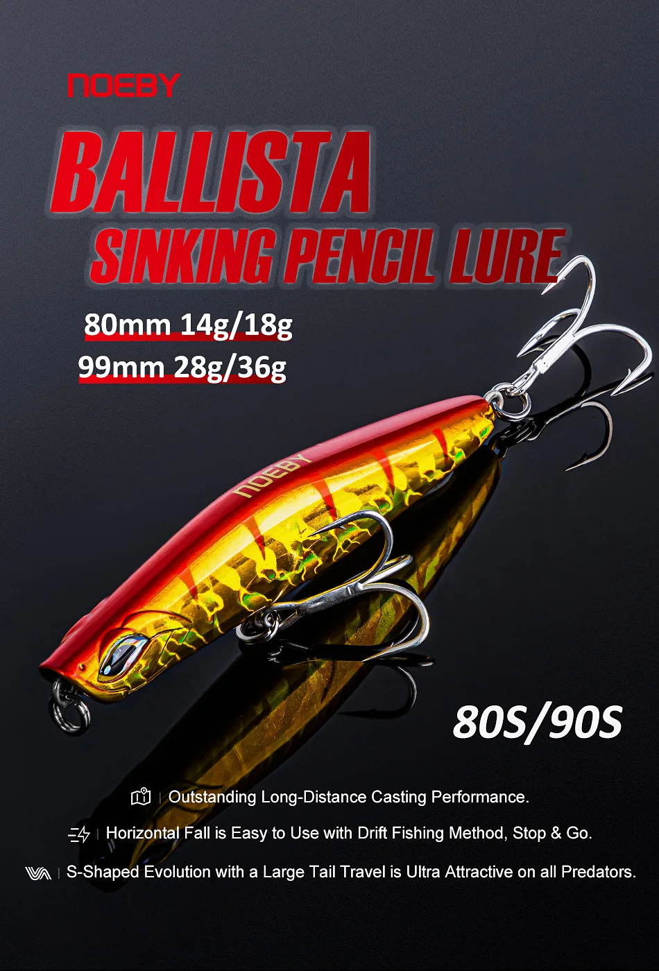 Noeby-señuelos de pesca tipo lápiz hundido, 99mm, 28g, 36g, Wobblers de fundición larga, cebo duro para aparejos de pesca de lubina y agua salada