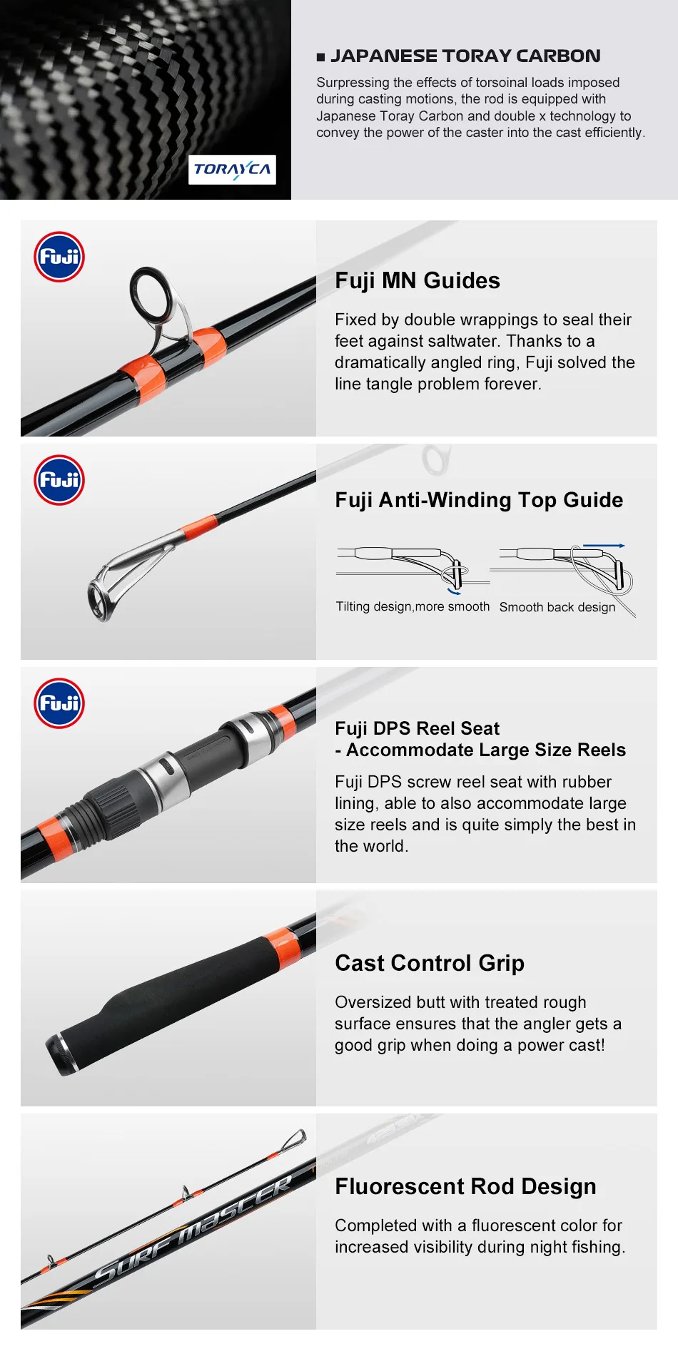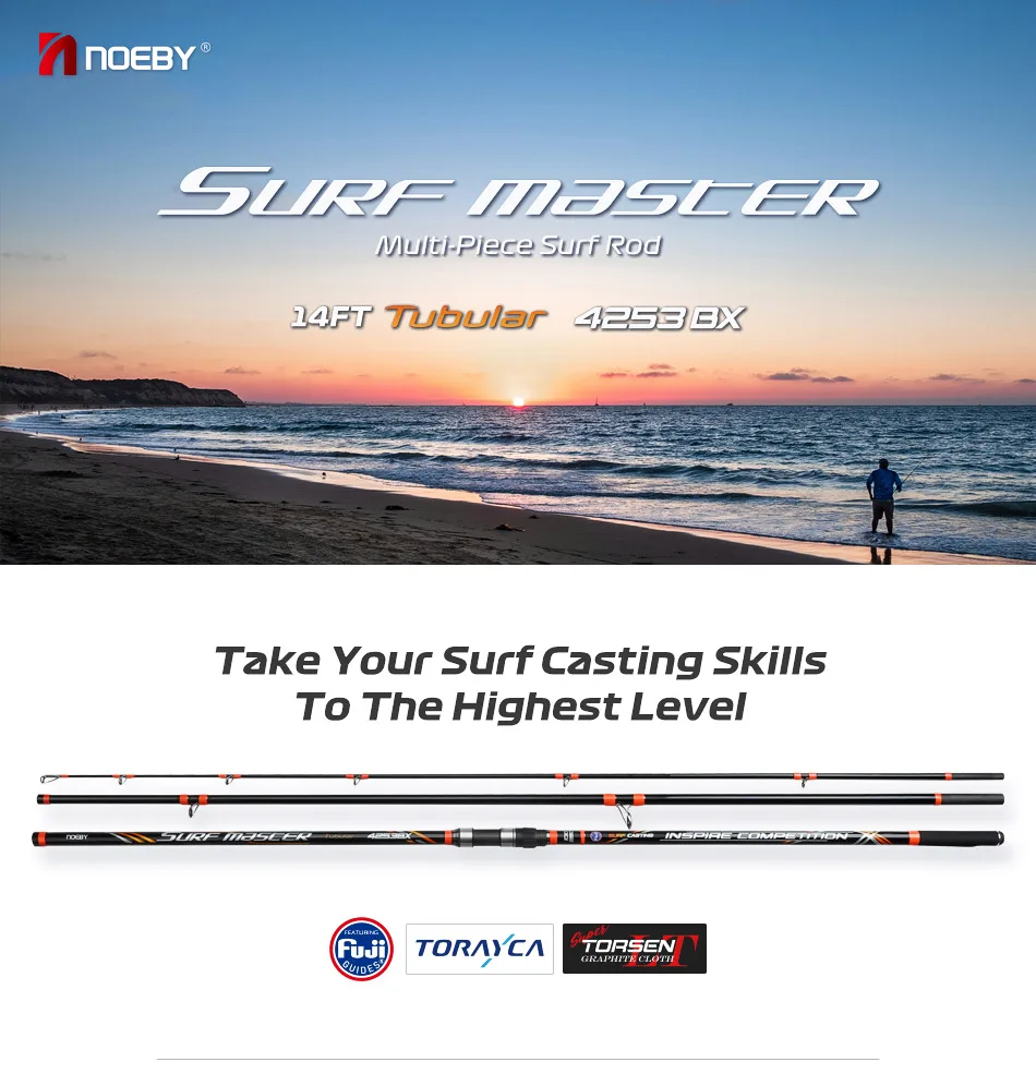 Caña de pescar NOEBY para lanzamiento de Surf, caña de pescar tubular de carbono de 3 secciones, guía Fuji, asiento de carrete DPS, plomo de 100-250g de lanzamiento largo, cañas de costera