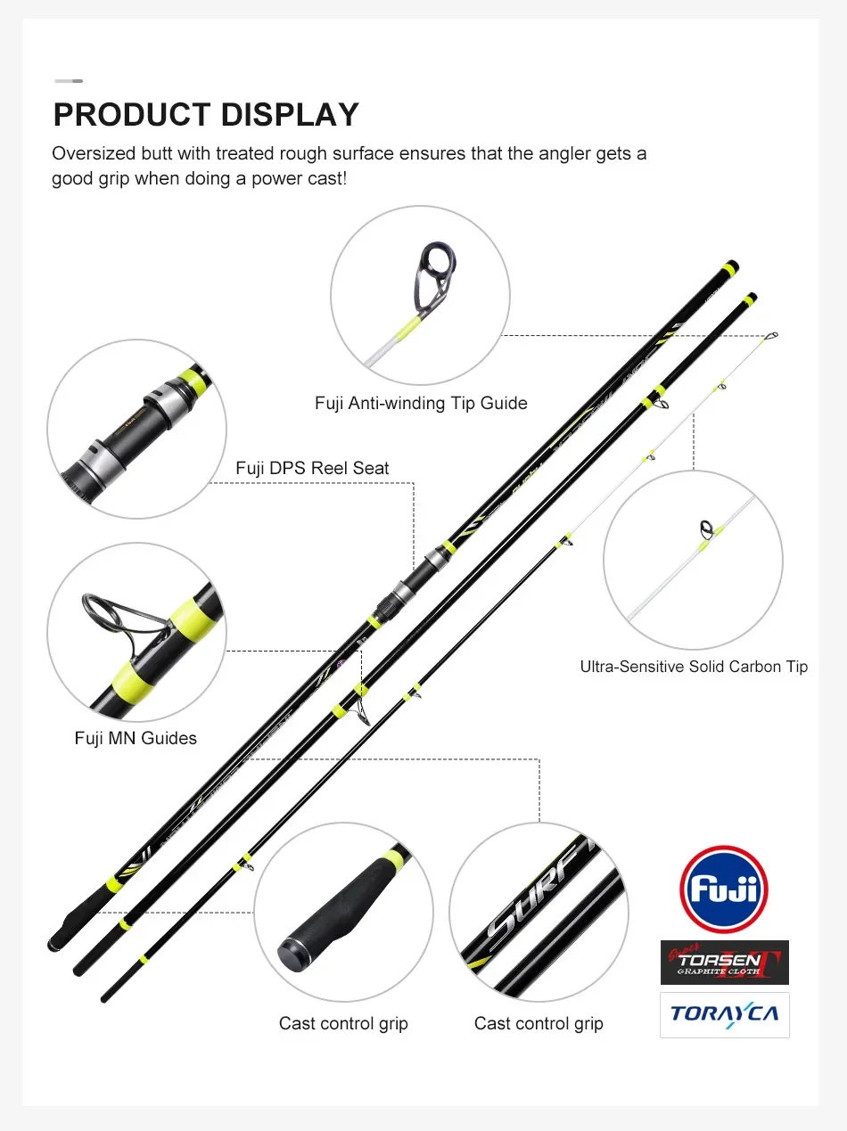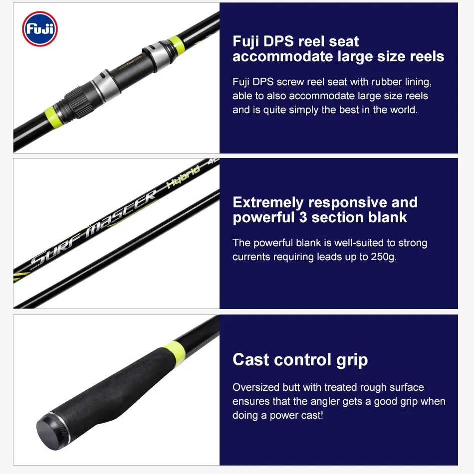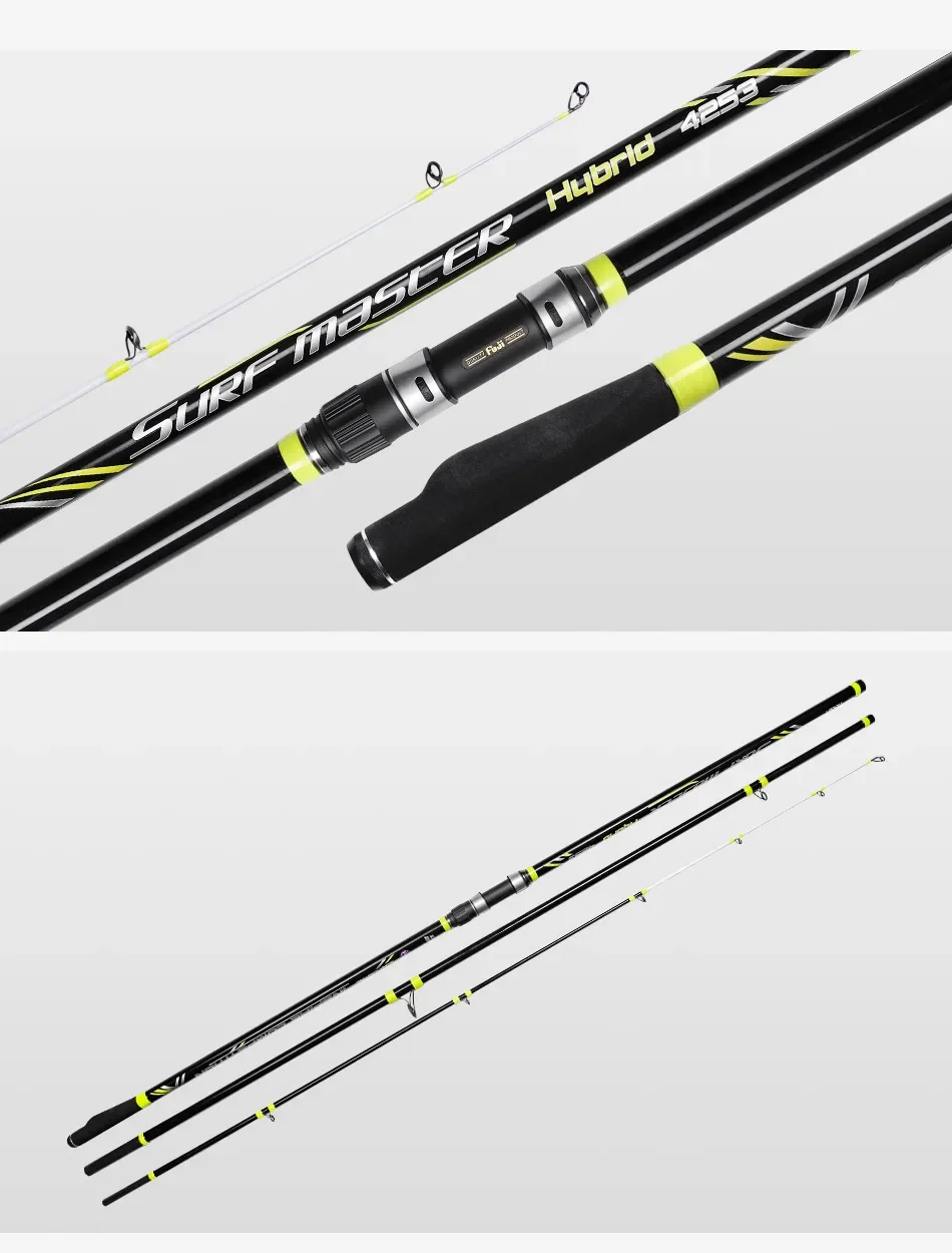Noeby caña de pescar de fundición de Surf con punta de carbono sólido, 425cm, 3 secciones, peso del señuelo, 100-250g, asiento de carrete Fuji DPS, cañas de Surf híbridas para playa